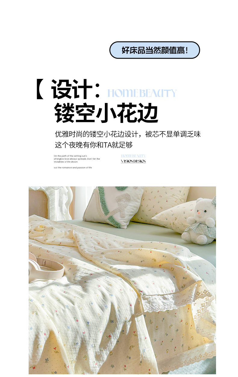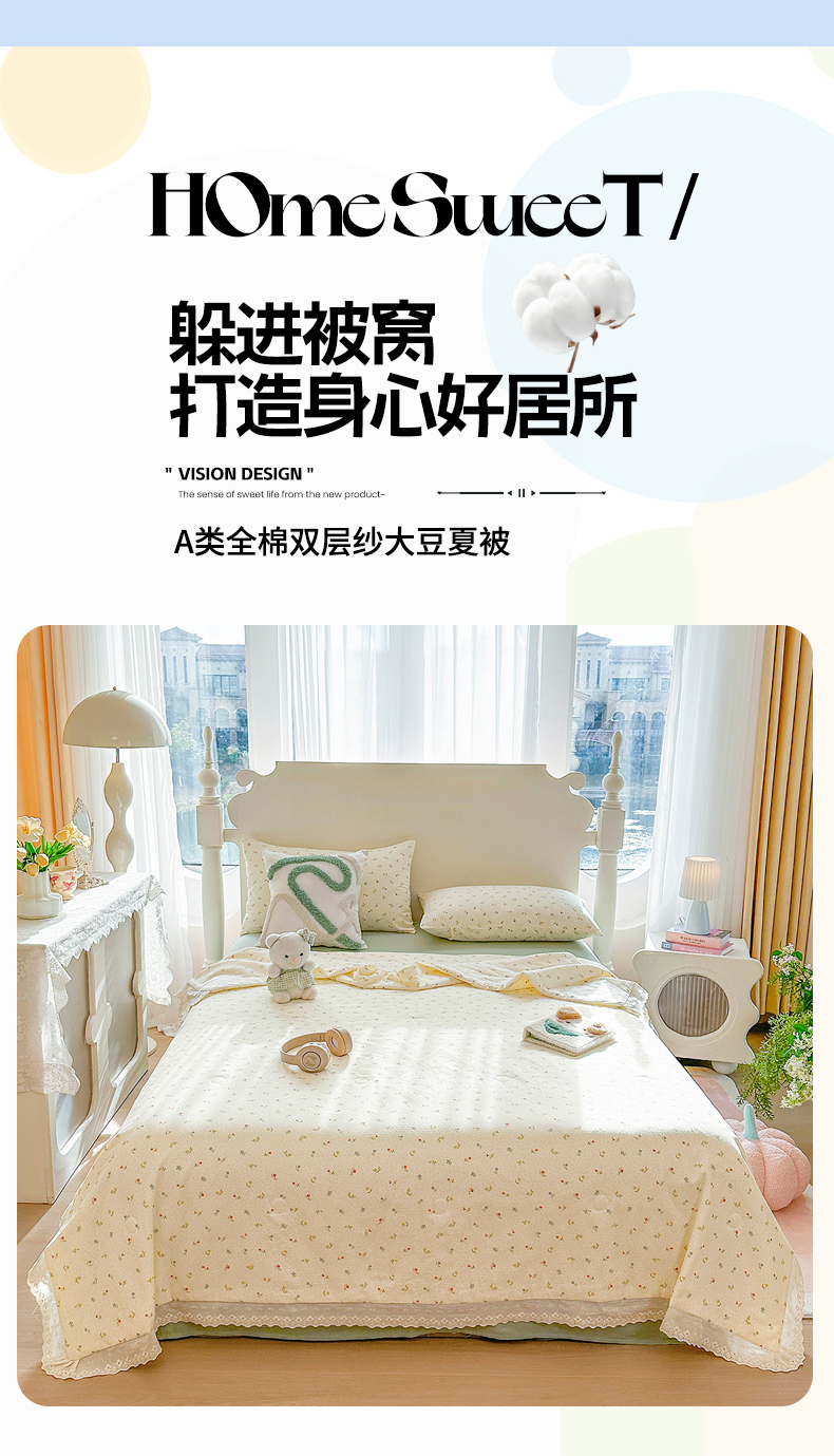 商品名称:木楌家居 2025新款全棉双层纱大豆夏被 雅颜