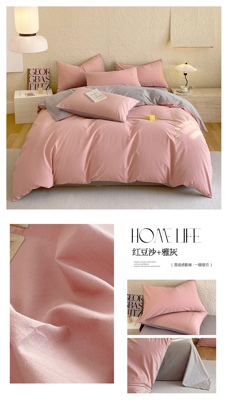 当前位置: 91家纺网 > 商品网购 > 床品套件 > 四件套 > 水洗棉四件套 > 拼社家纺 2025新款母婴及全棉水洗棉刺绣四件套纯棉床上用品 红豆沙+雅灰