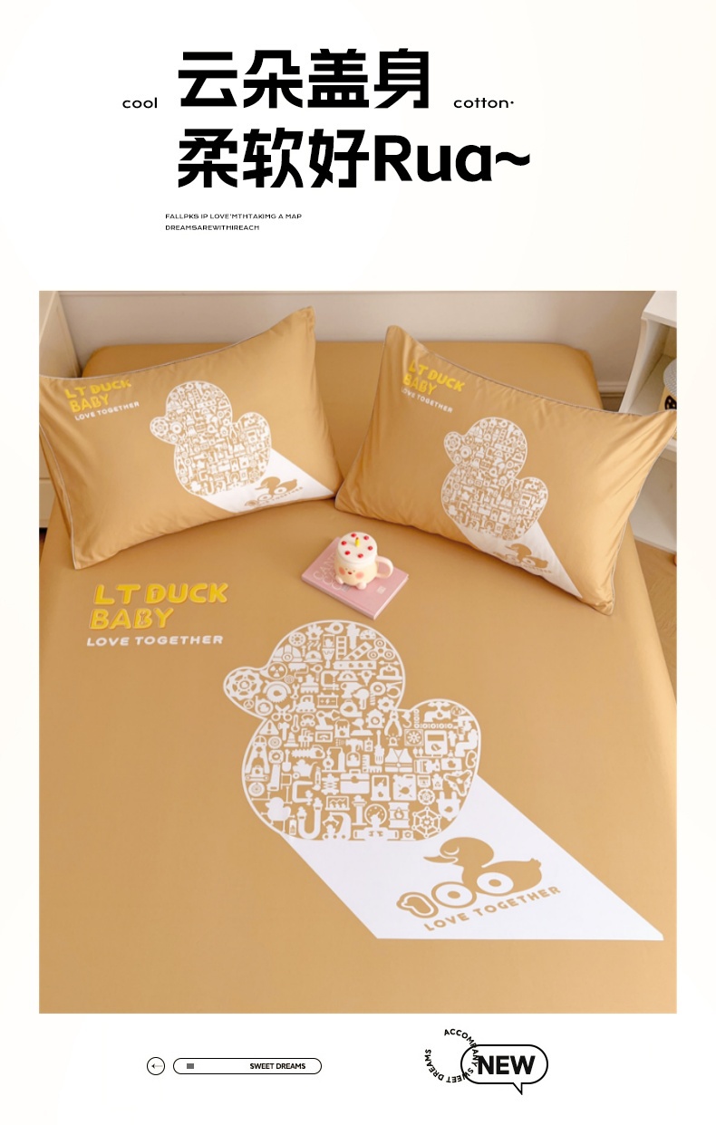 • 91家纺网 家纺一手货源 找家纺 梦舒羽 2025新款正版全棉床笠卡通床笠罩全包席梦思床垫保护罩 工程鸭