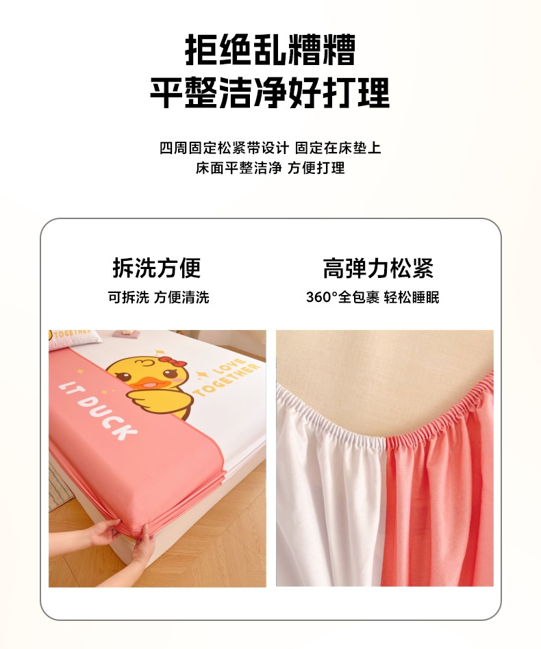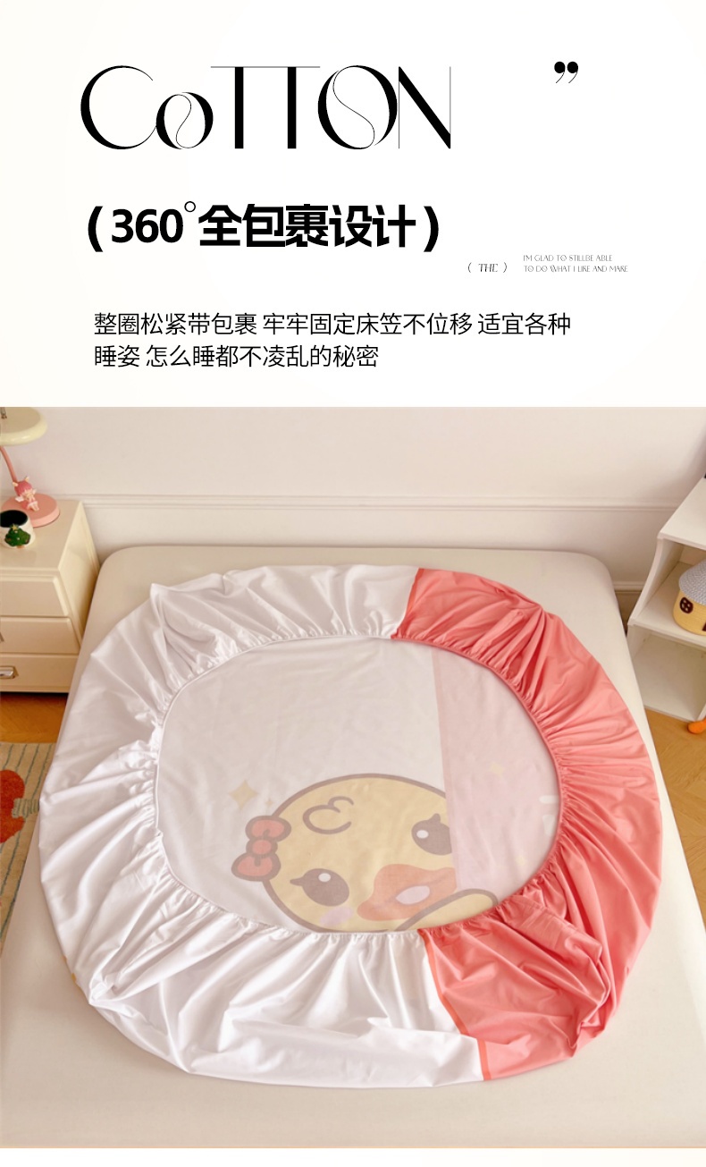 • 91家纺网 家纺一手货源 找家纺 梦舒羽 2025新款正版全棉床笠卡通床笠罩全包席梦思床垫保护罩 羞涩鸭