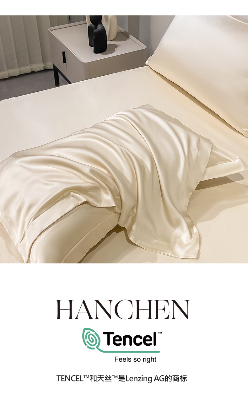 • 91家纺网 家纺一手货源 找家纺 (买家秀 爆款花型不断货)A类母婴级兰精天丝TM纯色枕套兰精天丝枕头套一对装天丝单枕套 单枕套-奶昔