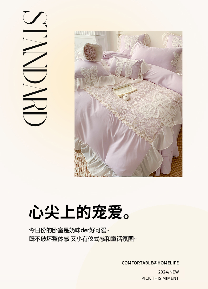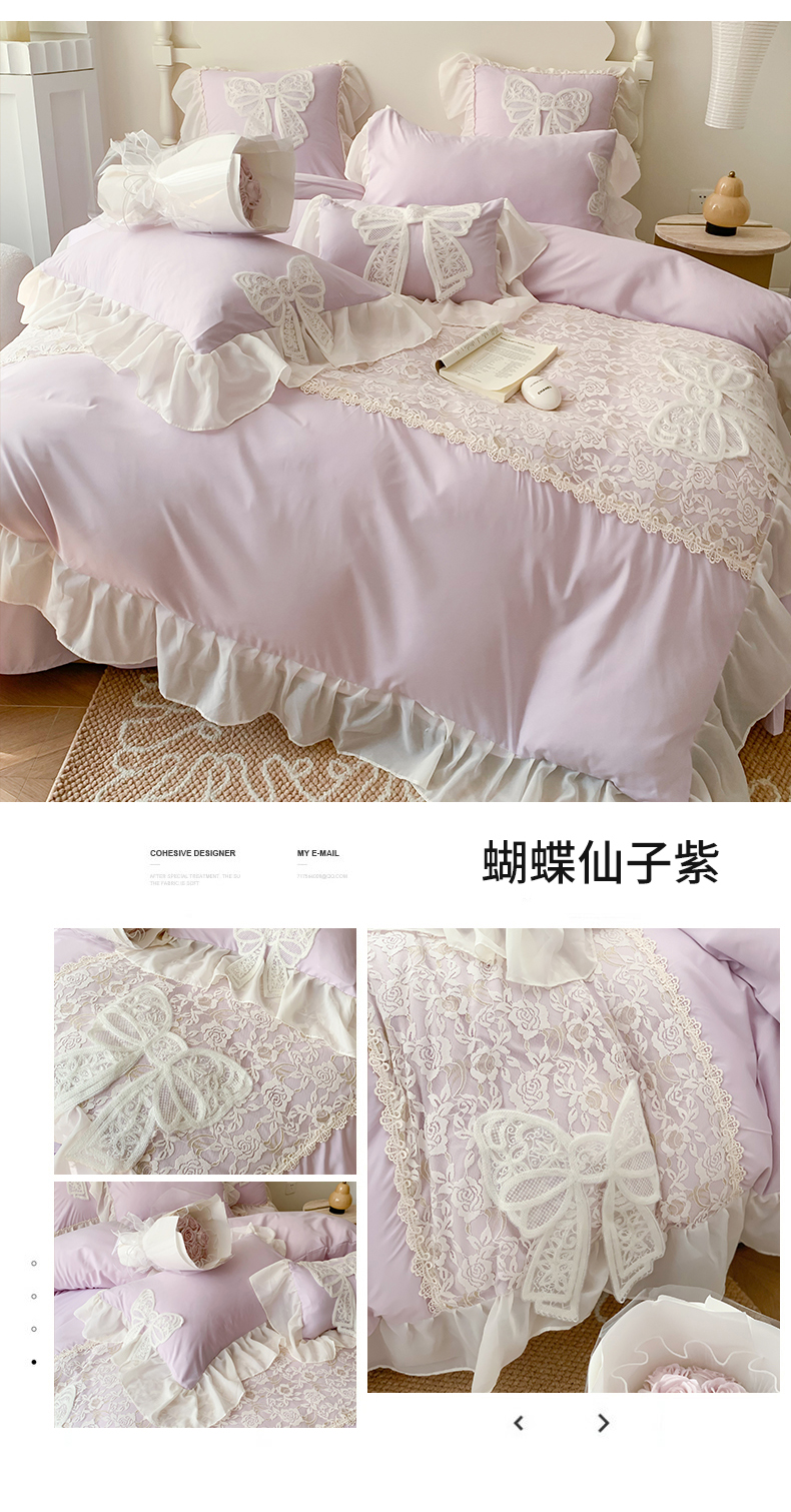 当前位置: 91家纺网 > 商品网购 > 床品套件 > 四件套 > 其它四件套 > 吾欢心2025新款糯小棉立体蝴蝶刺绣花边套件 蝴蝶仙子紫