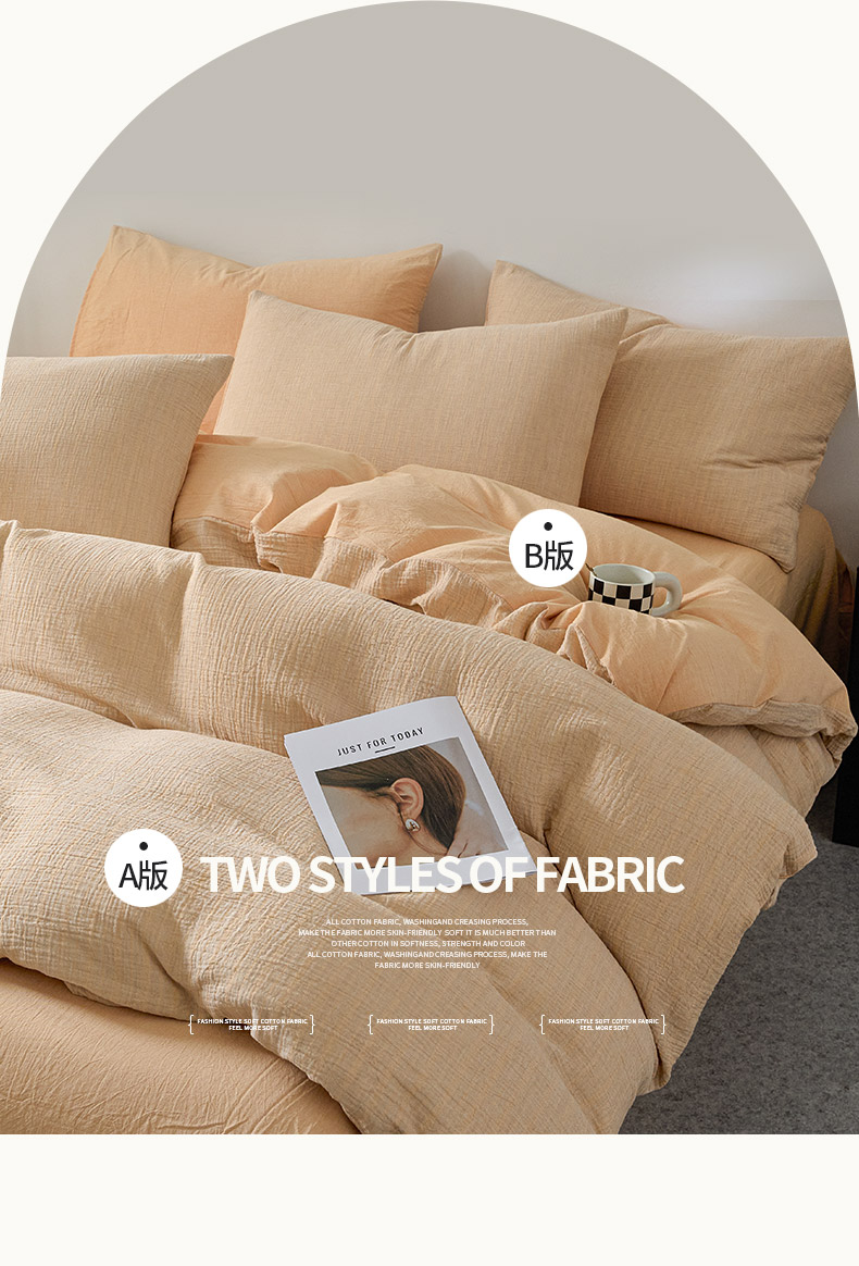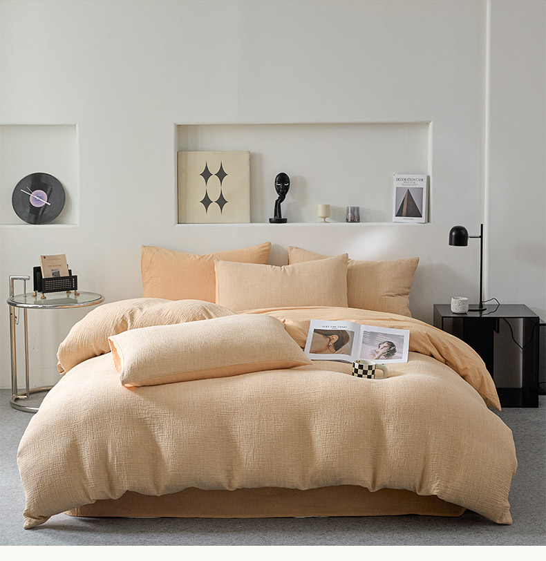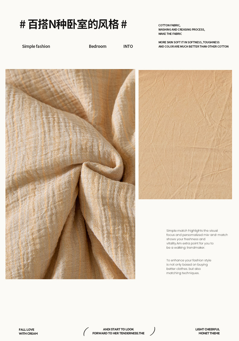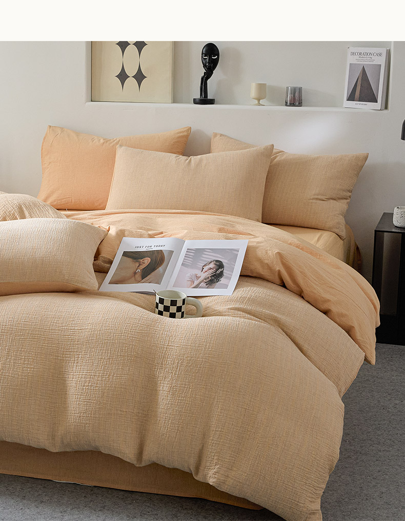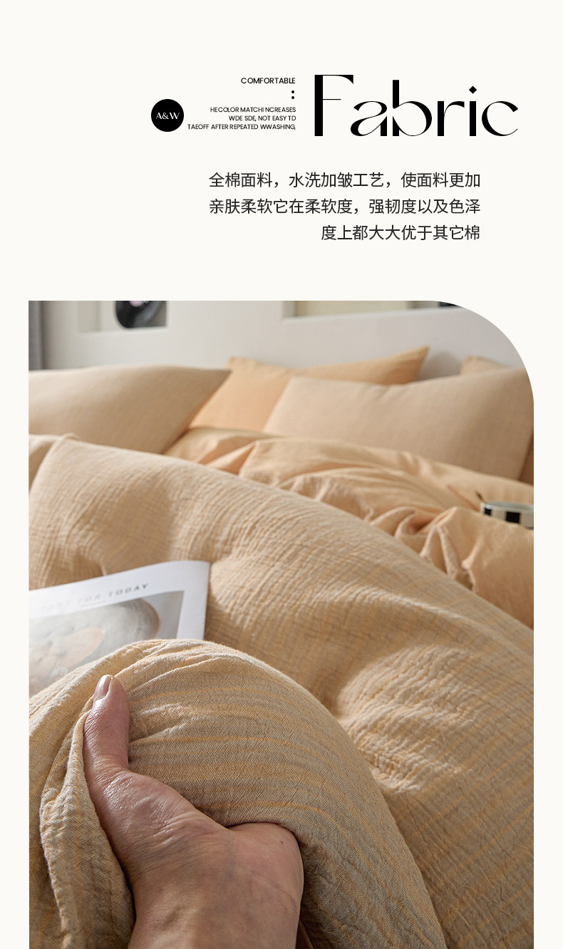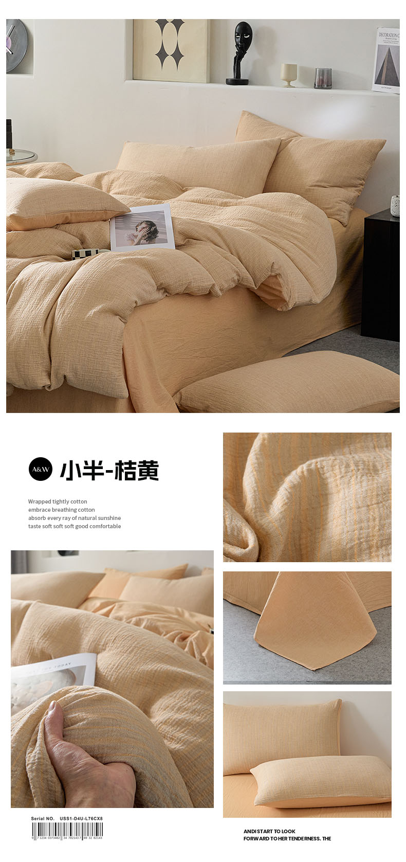 当前位置: 91家纺网 > 商品网购 > 床品套件 > 四件套 > 全棉普通四件套 > AB家纺 2025新款三层款皱皱纱条纹四件套 小半-桔黄