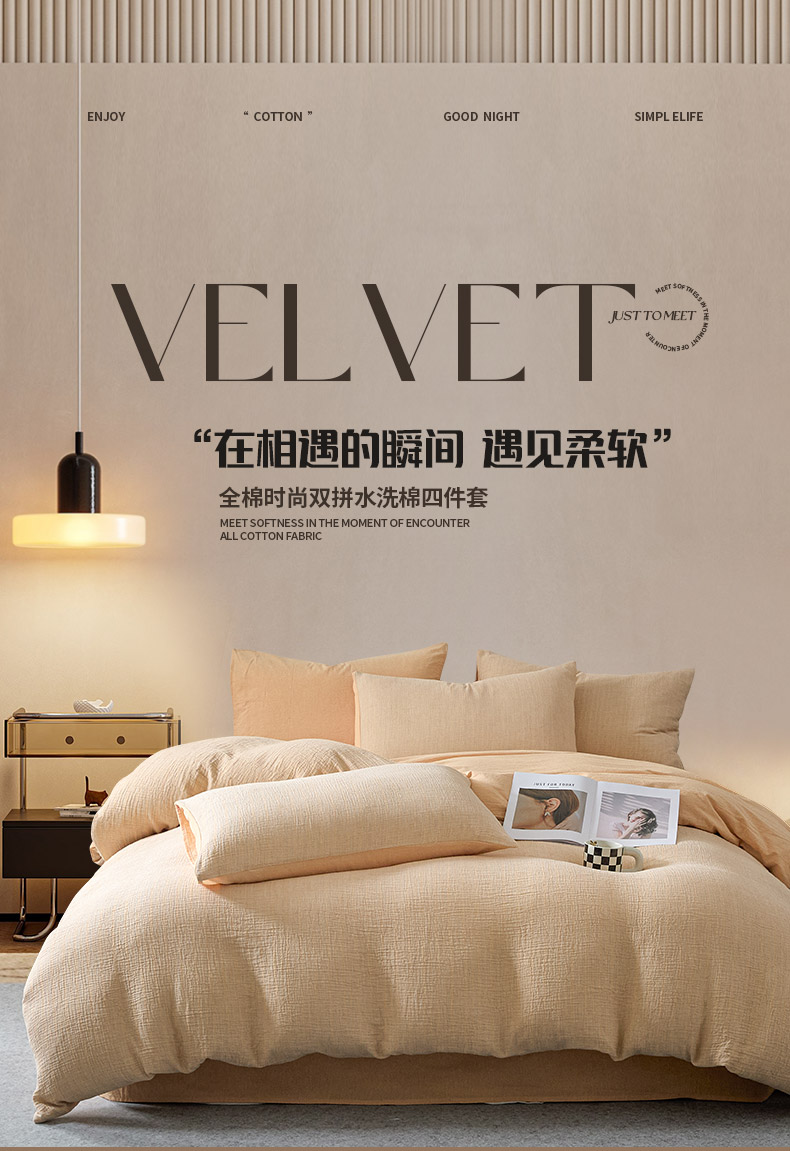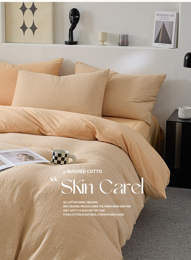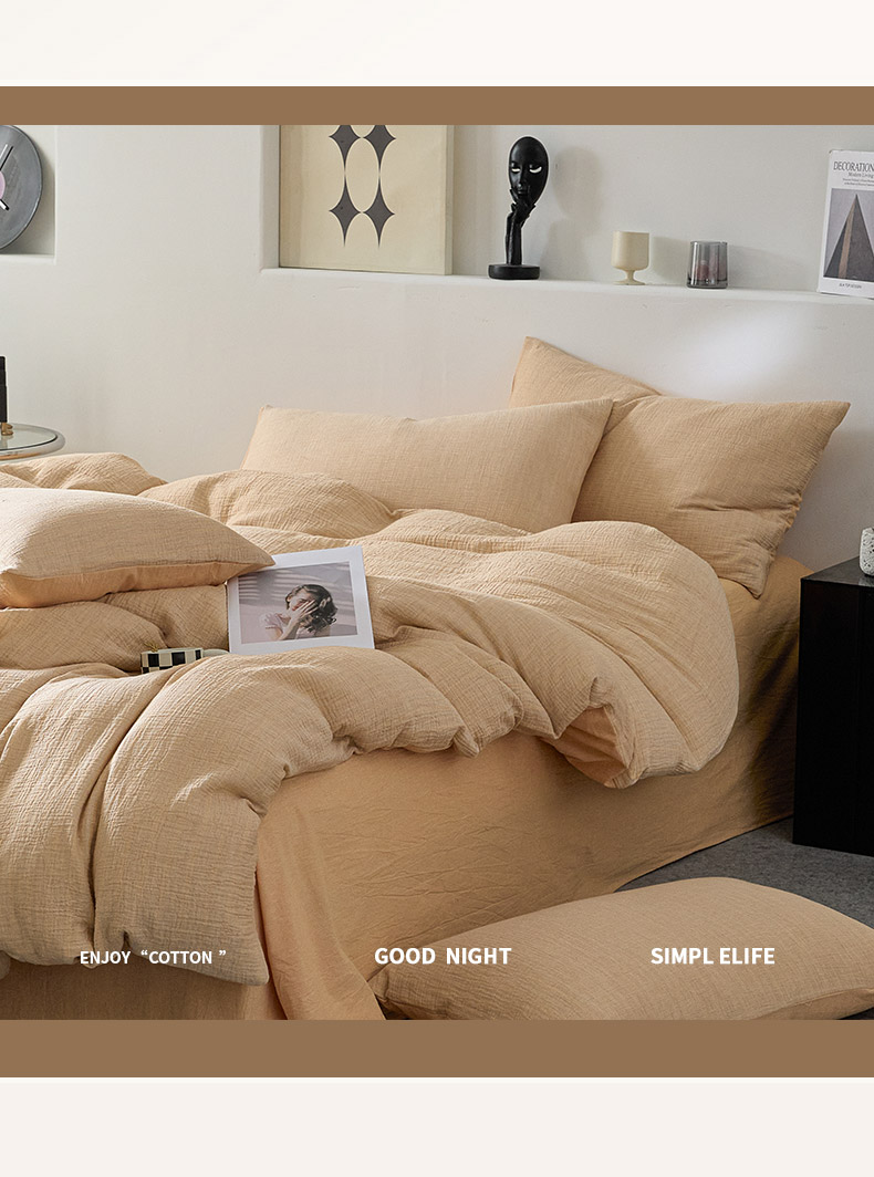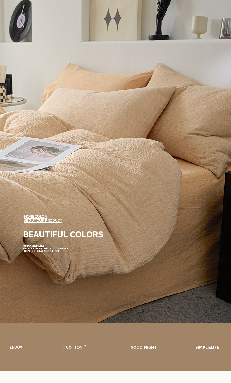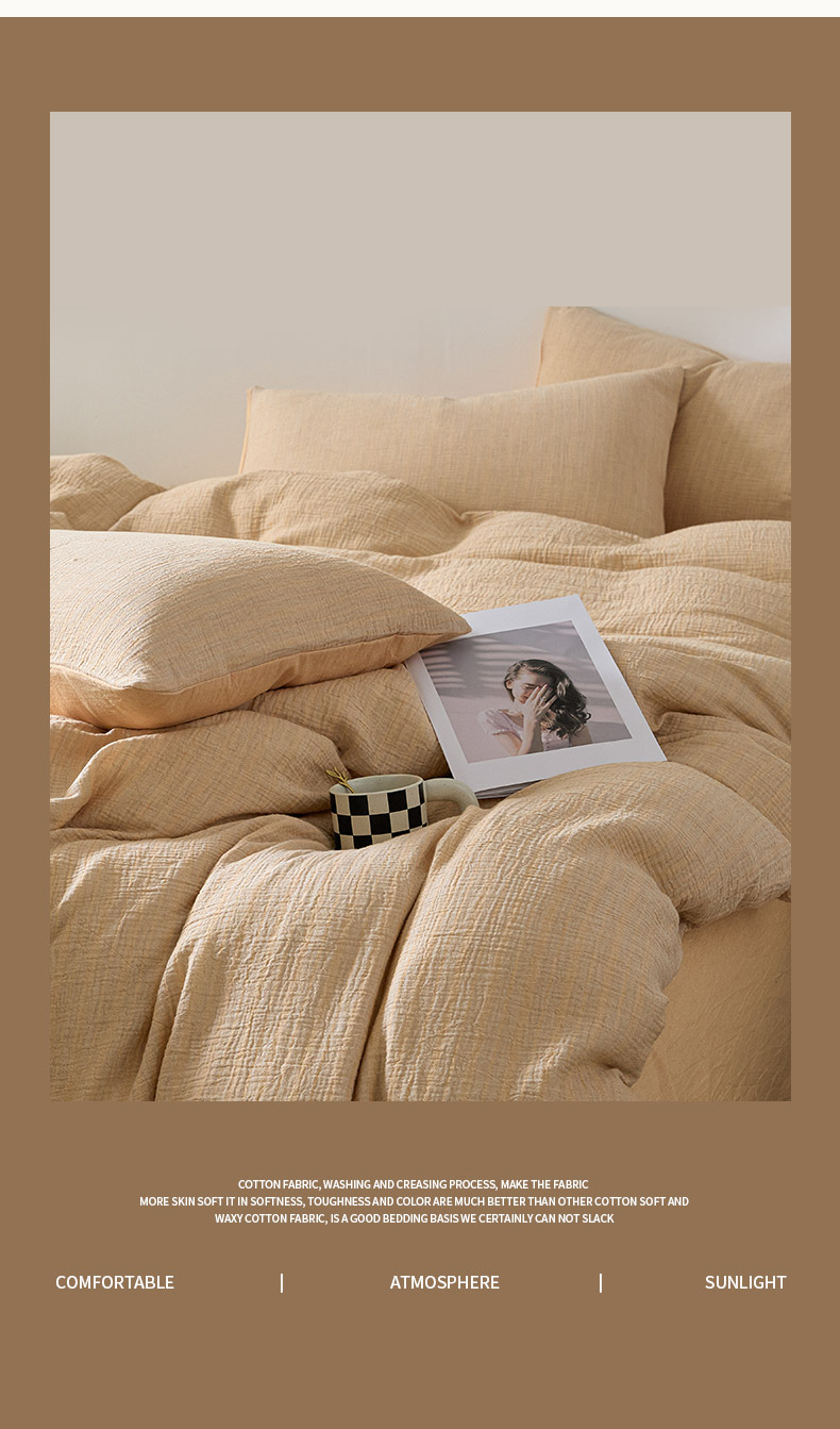 当前位置: 91家纺网 > 商品网购 > 床品套件 > 四件套 > 全棉普通四件套 > AB家纺 2025新款三层款皱皱纱条纹四件套 小半-桔黄