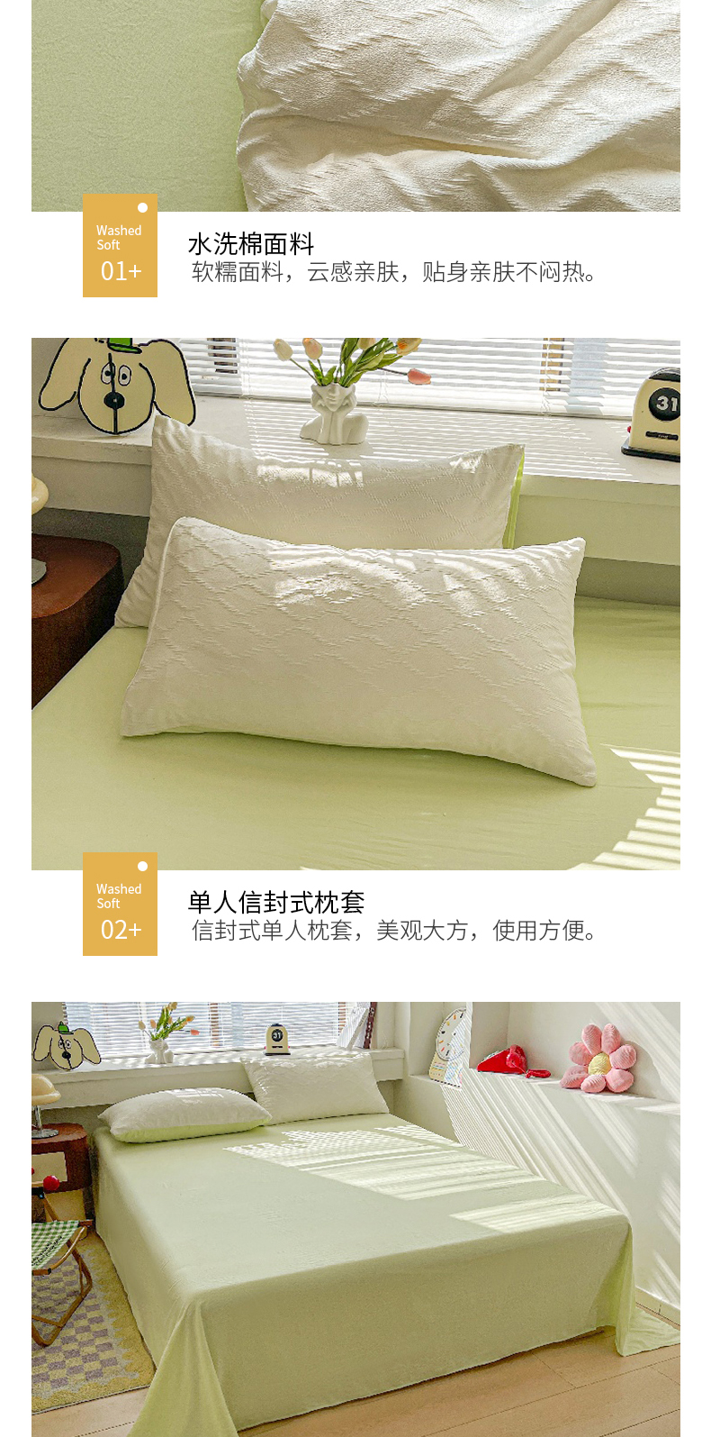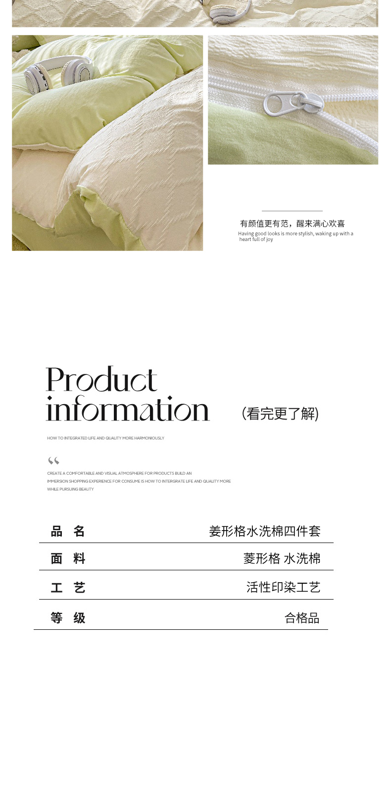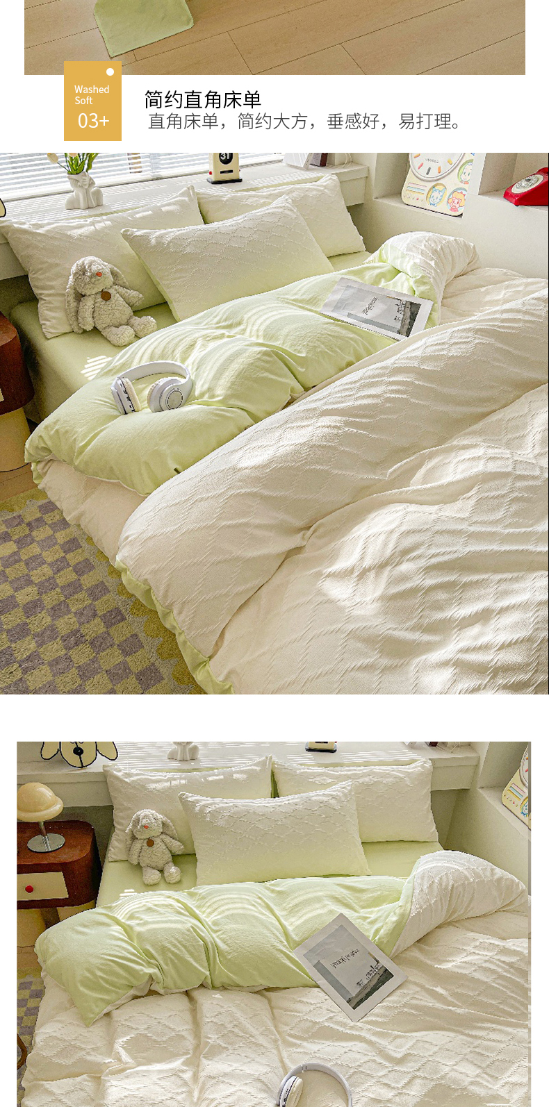 当前位置: 91家纺网 > 商品网购 > 床品套件 > 四件套 > 水洗棉四件套 > 麒东家纺 2025年新款水洗棉春夏菱形格双拼小清新高品质四件套 菱形格-白绿