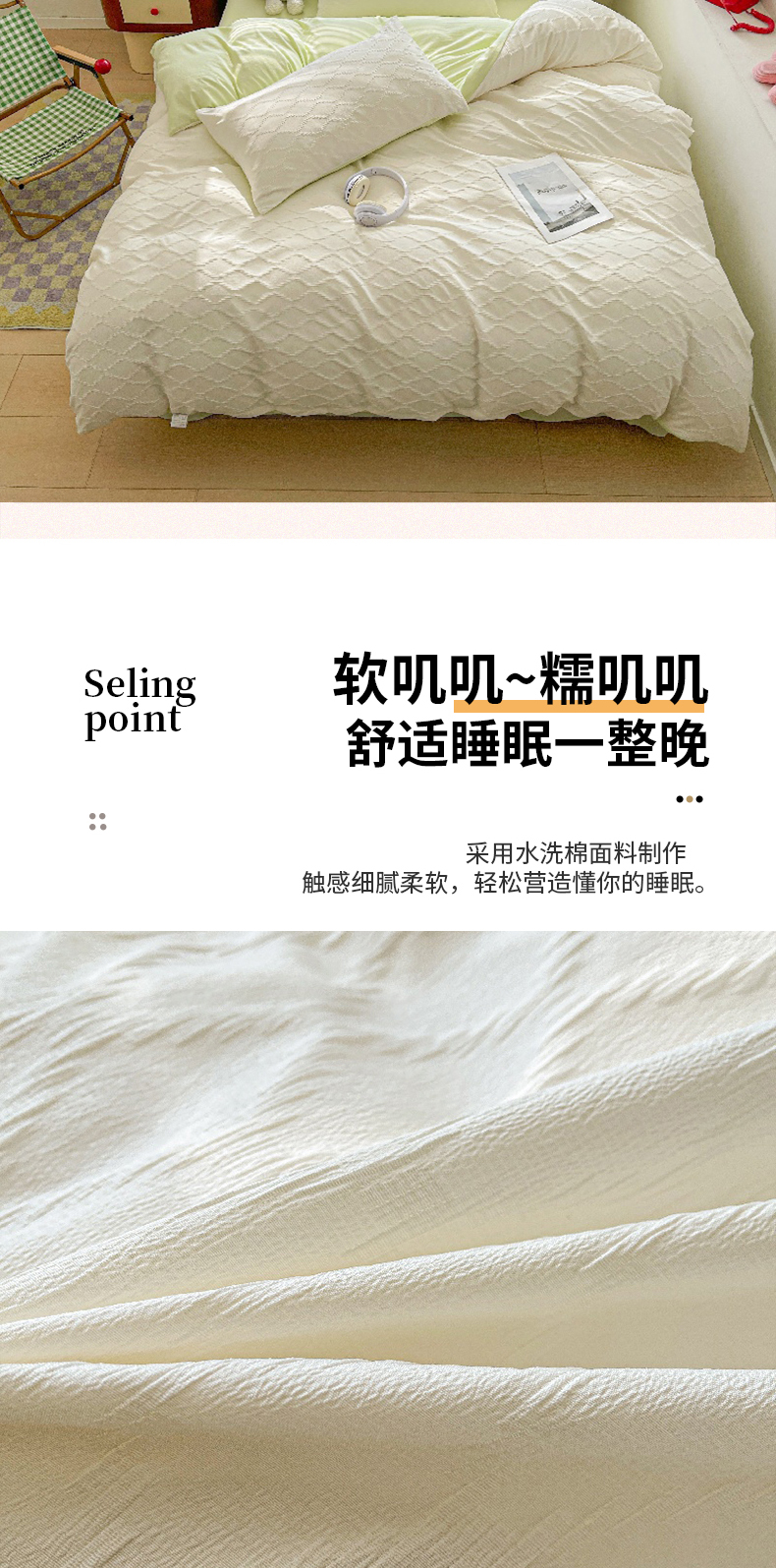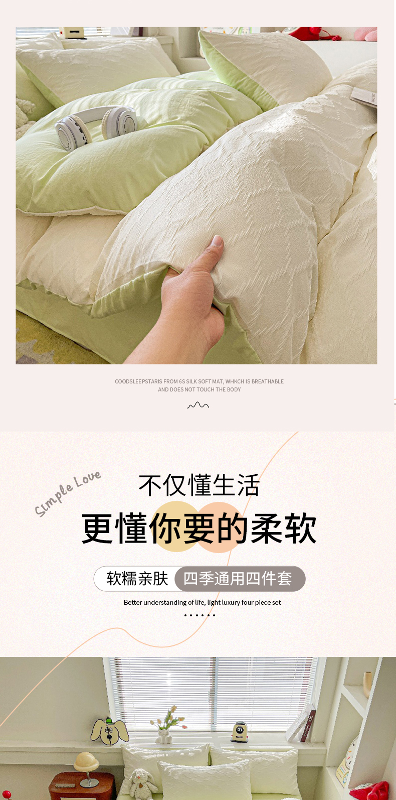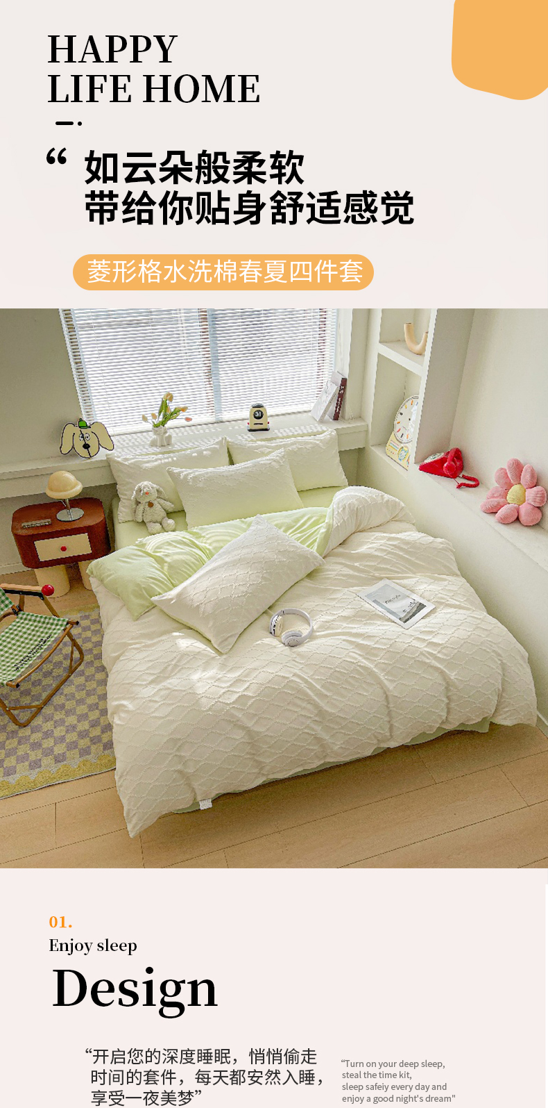 当前位置: 91家纺网 > 商品网购 > 床品套件 > 四件套 > 水洗棉四件套 > 麒东家纺 2025年新款水洗棉春夏菱形格双拼小清新高品质四件套 菱形格-白绿
