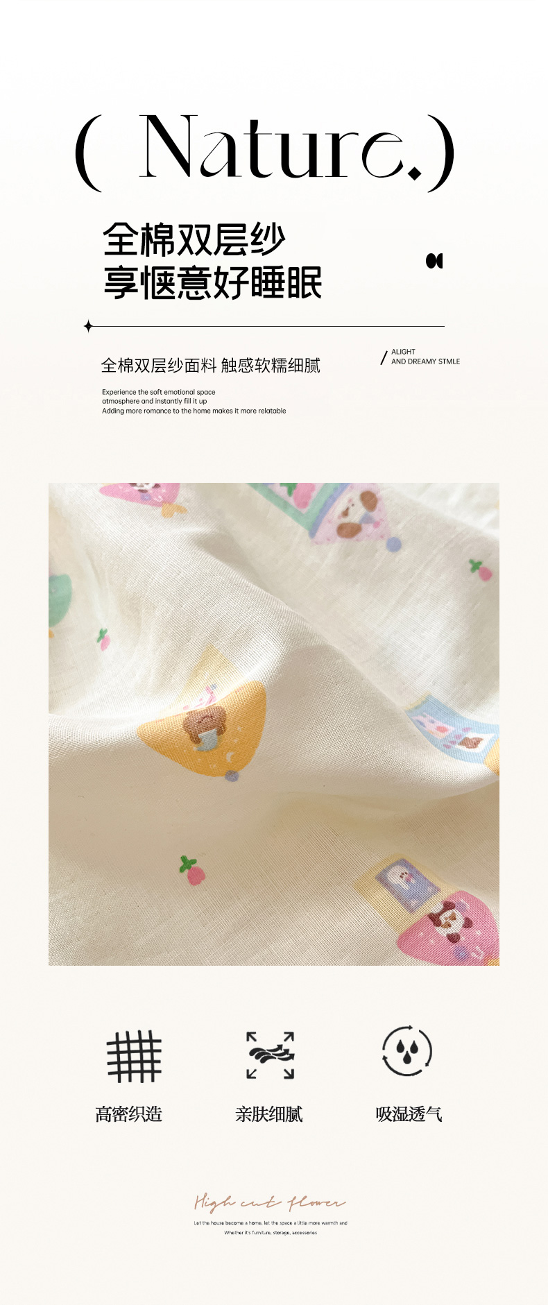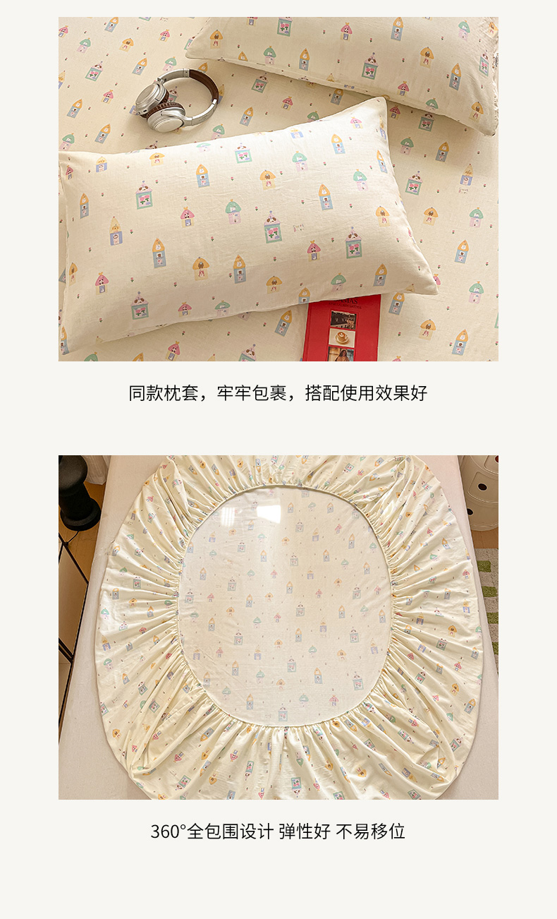 博雅 2025新款全棉A类双层纱床笠 甜梦城堡