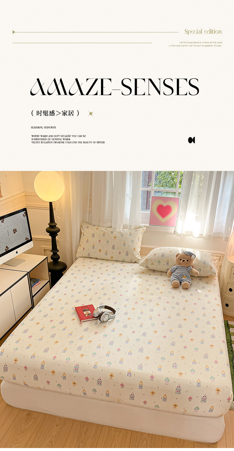 • 91家纺网 家纺一手货源 找家纺 博雅 2025新款全棉A类双层纱床笠 甜梦城堡
