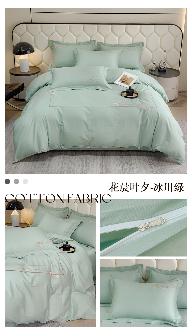 商品名称:U品汇 2025新款纯棉全棉长绒棉刺绣绣花高端礼盒四件套-叶夕 花晨叶夕-冰川绿