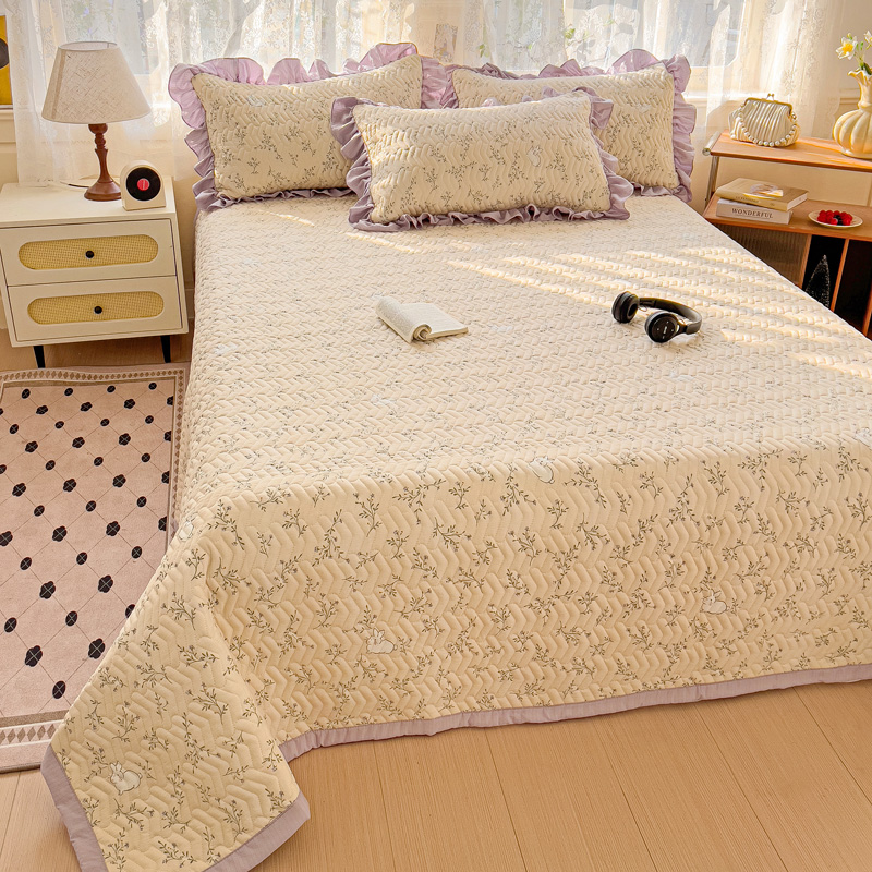 纽缦家纺 2025云感提花双层纱加厚夹棉绗缝床盖 森田野园