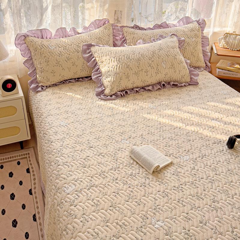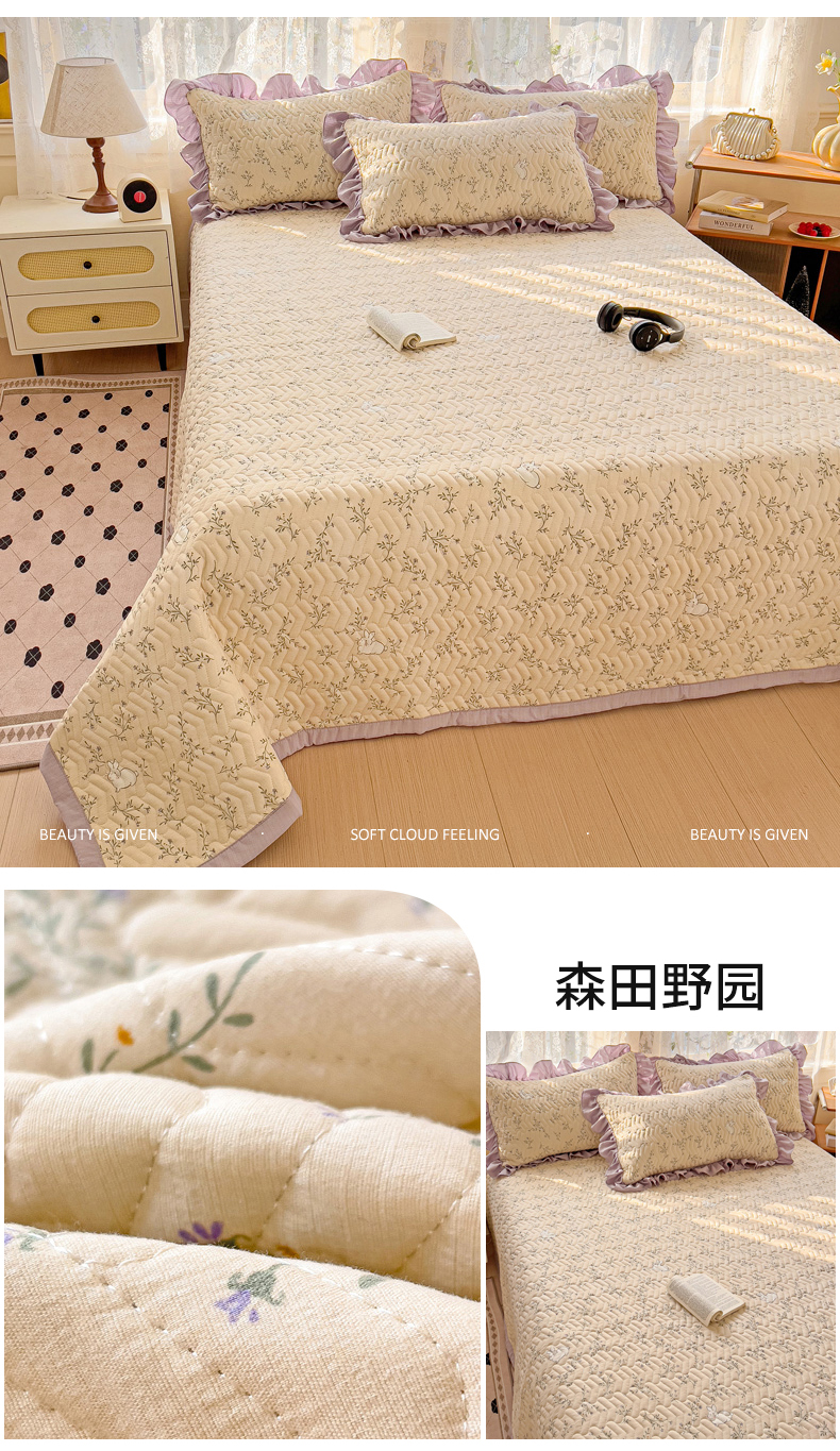 商品名称:纽缦家纺 2025云感提花双层纱加厚夹棉绗缝床盖 森田野园