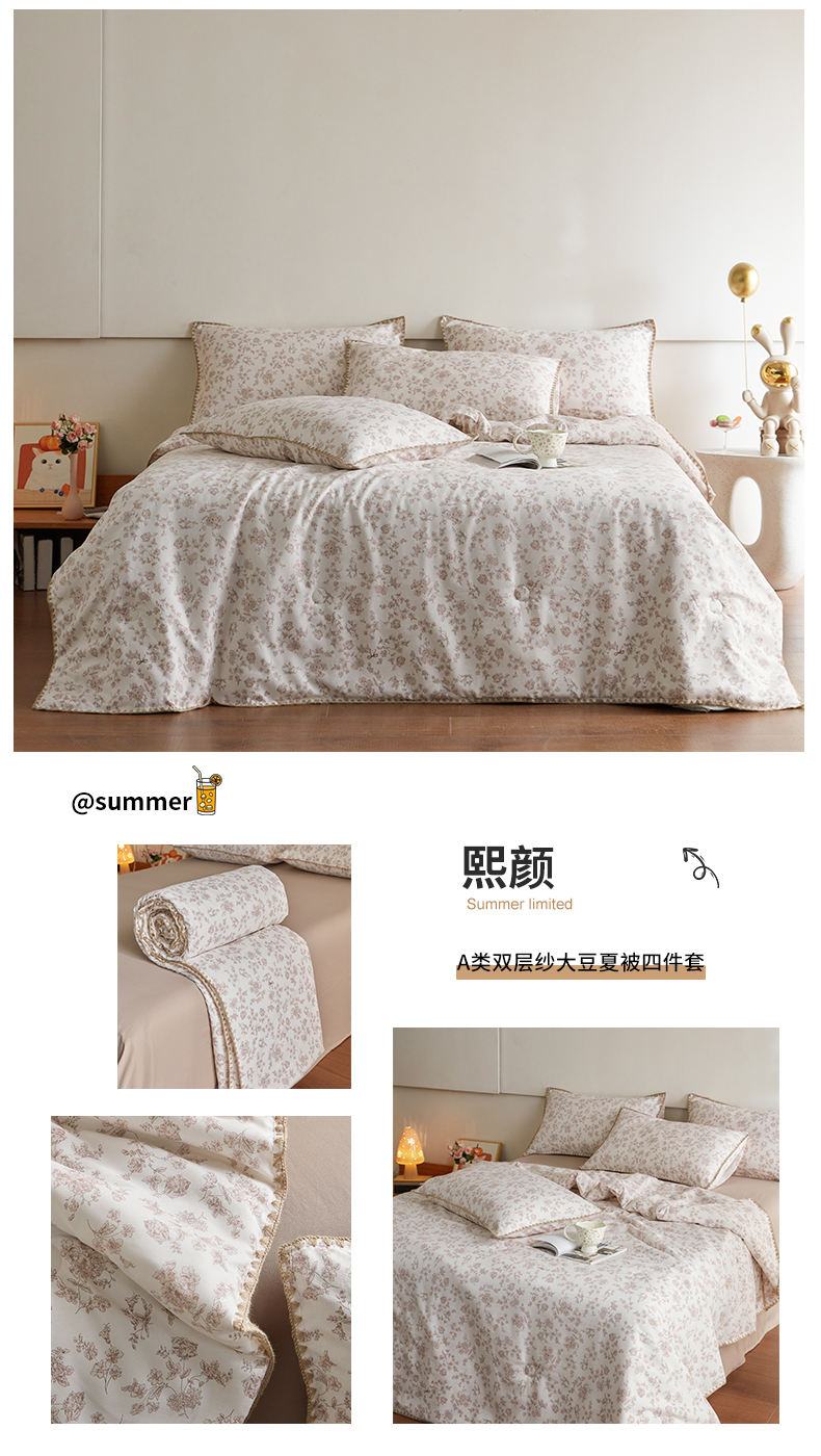 商品名称:暖阳 2025年新款大豆双层纱夏被四件套 熙颜