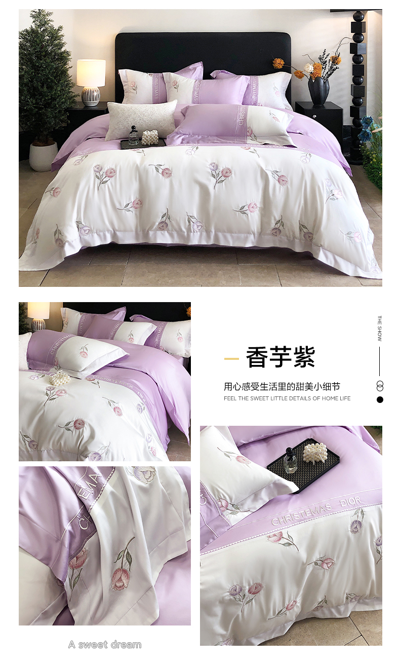 商品名称:博纳家纺 2025新款亲肤棉绣花四件套--泡芙小姐 香芋紫
