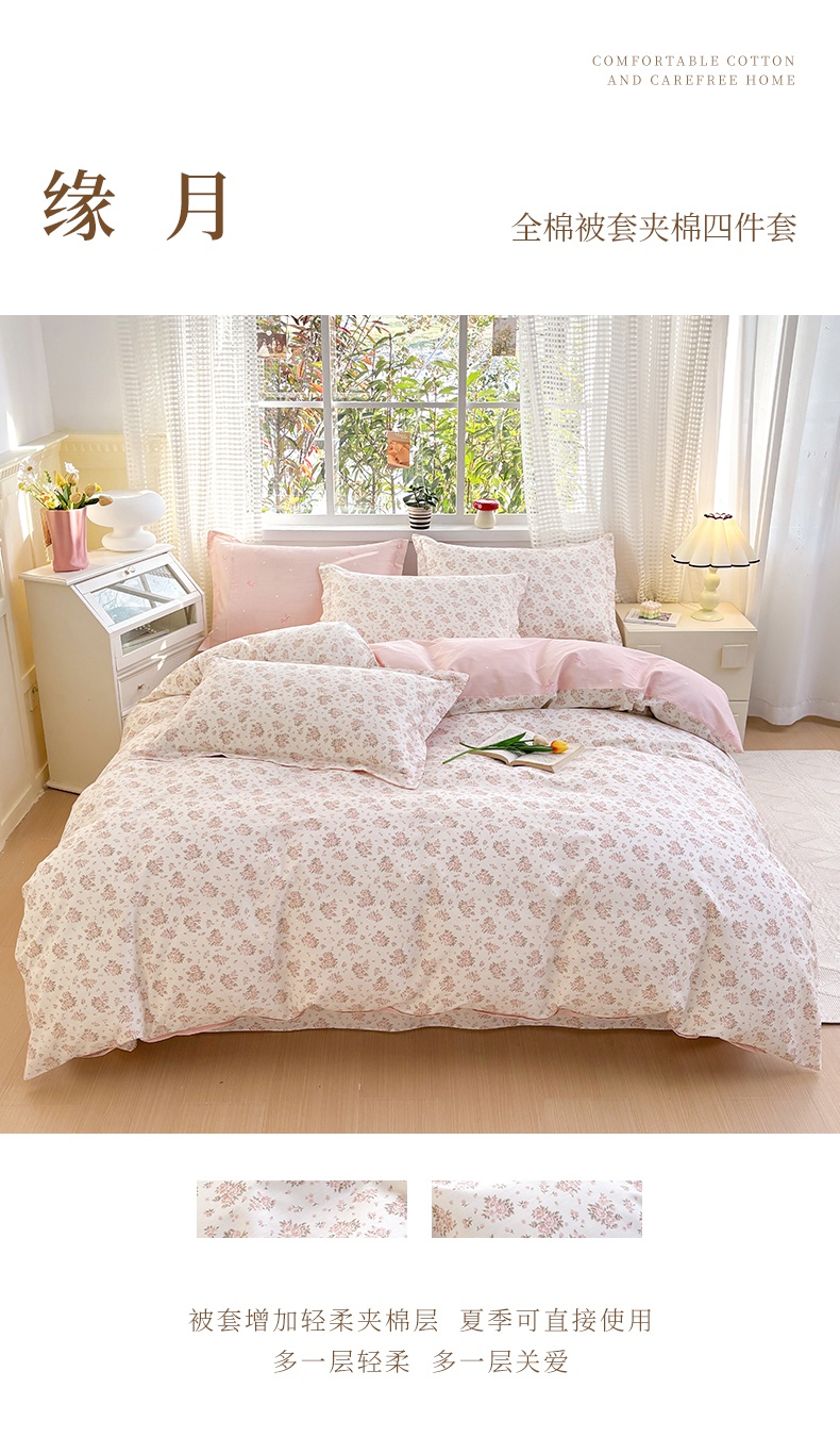 当前位置: 91家纺网 > 商品网购 > 床品套件 > 四件套 > 全棉普通四件套 > 元元被芯 2025新款40支13372全棉印花全棉被套夹棉四件套 春溪