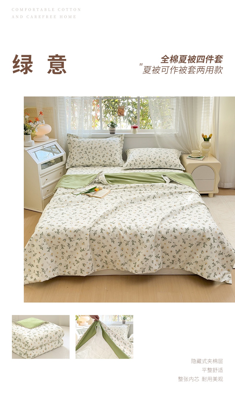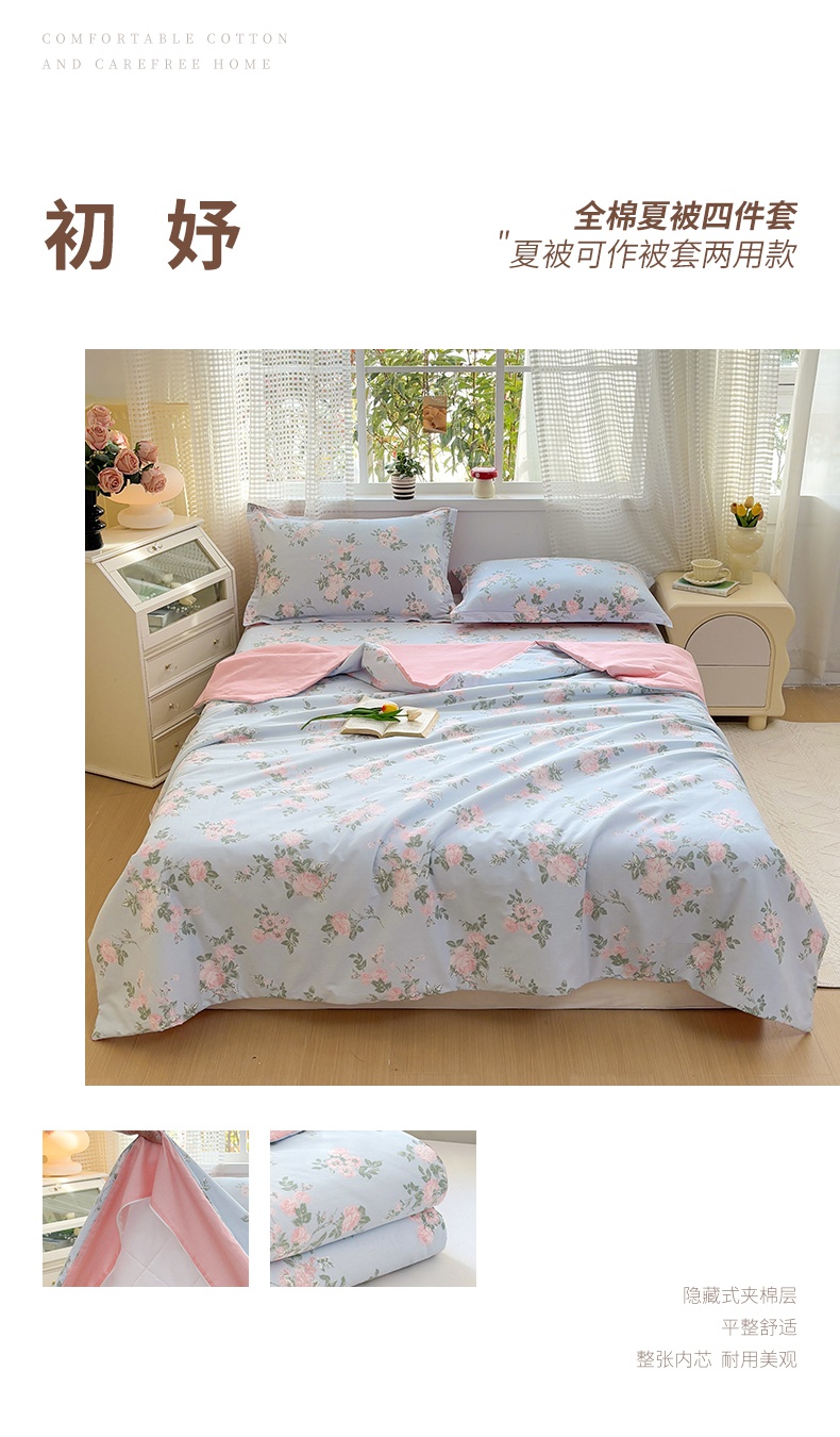 • 91家纺网 家纺一手货源 找家纺 元元被芯 2025新款40支13372全棉印花夏被四件套 悦影