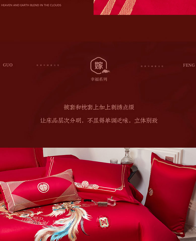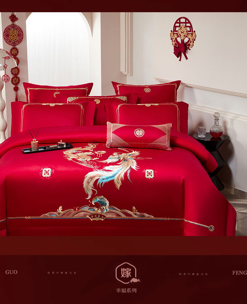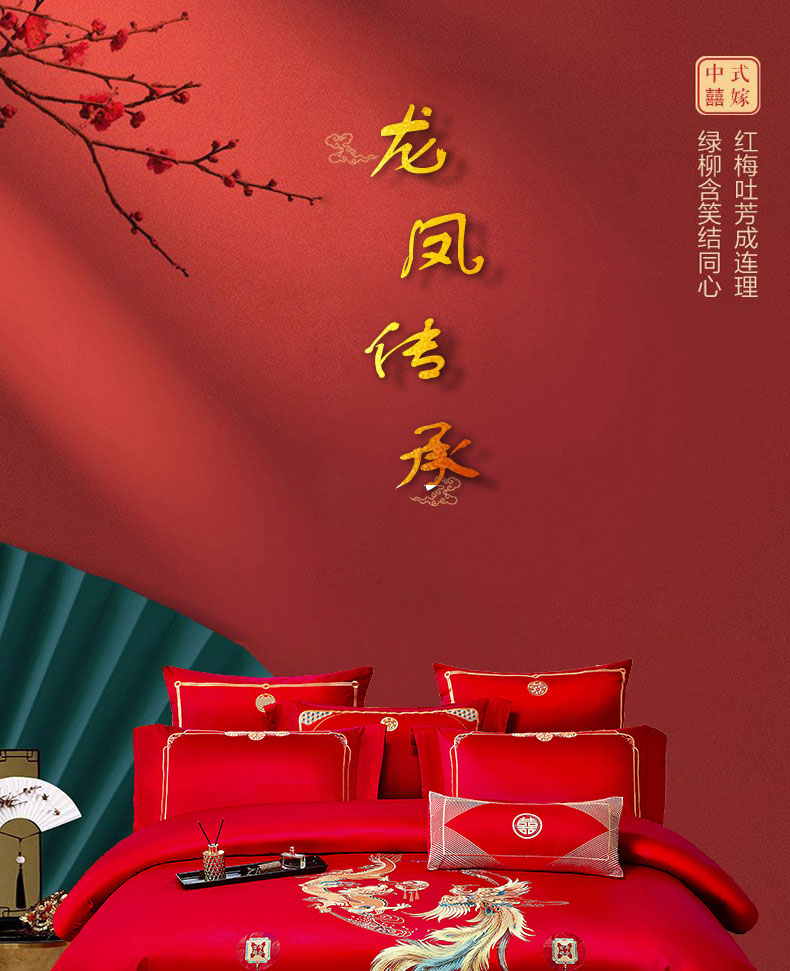当前位置: 91家纺网 > 商品网购 > 床品套件 > 四件套 > 婚庆四件套 > 蒂爵2025新款婚庆四件套A版长绒棉绣花 B版100长绒棉(加大+20元) 龙凤传承