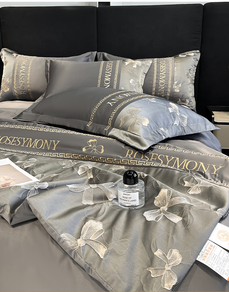 (总)宇航家纺 2025新款水洗真丝浮雕提花绣花夏被四件套,蝴蝶结-深灰,蝴蝶结-香槟,艾玛-粉玉,艾玛-香槟,褔蝶-奶白,褔蝶-清新绿,褔蝶-香槟,银杏叶-蓝灰,银杏叶-浅香槟