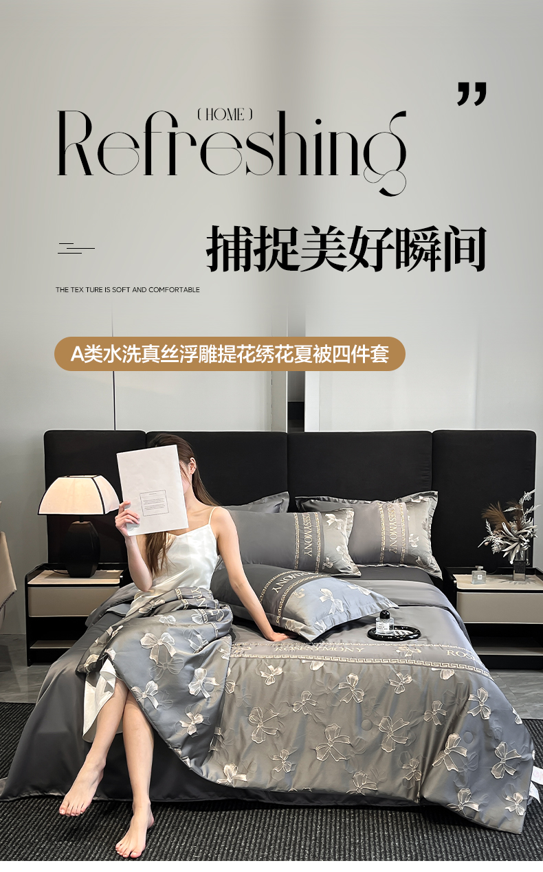 商品名称:(总)宇航家纺 2025新款水洗真丝浮雕提花绣花夏被四件套