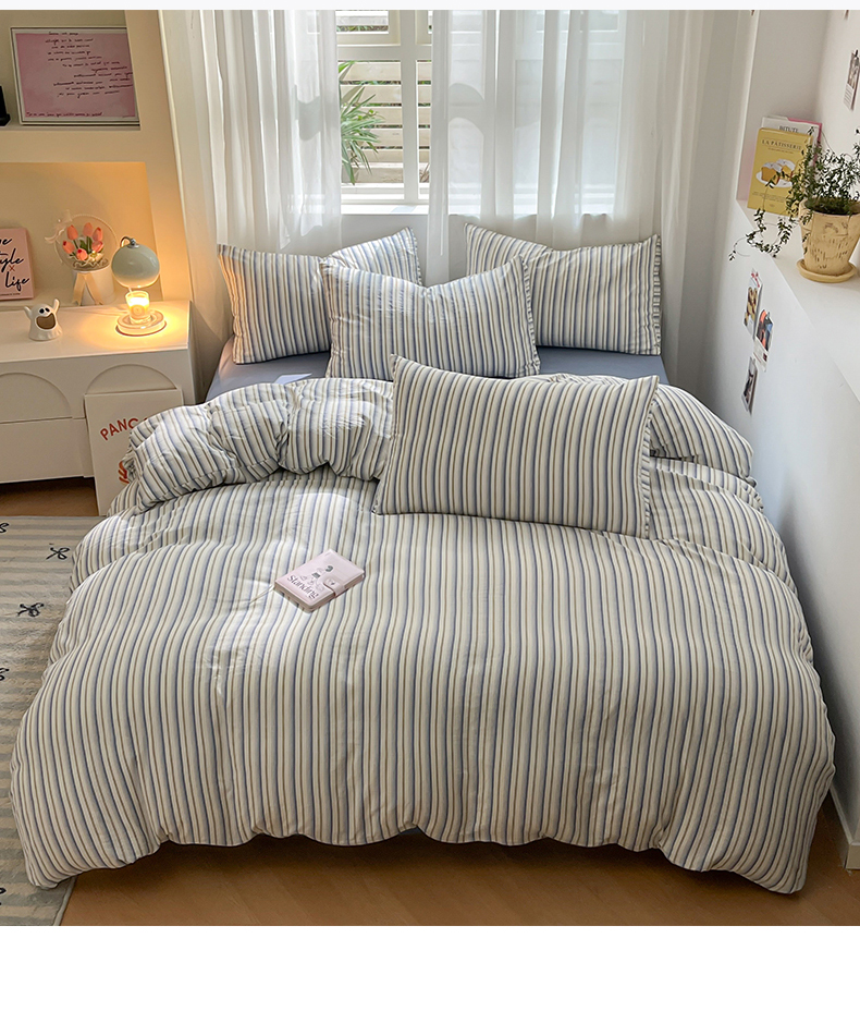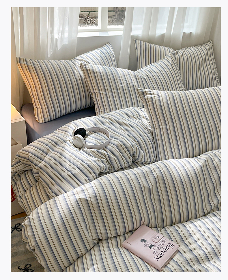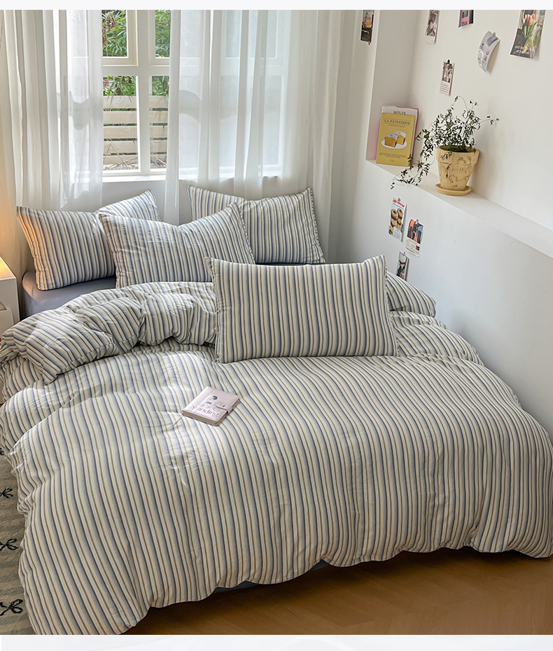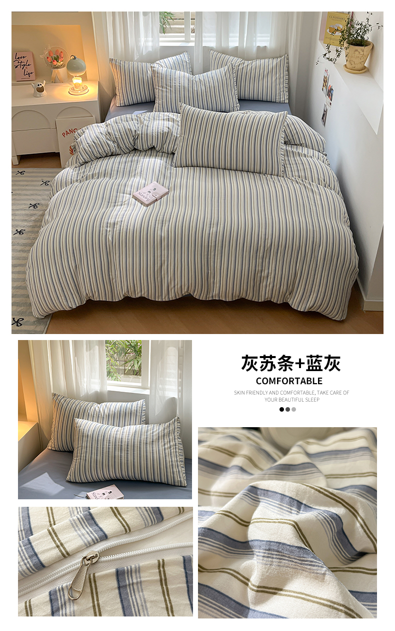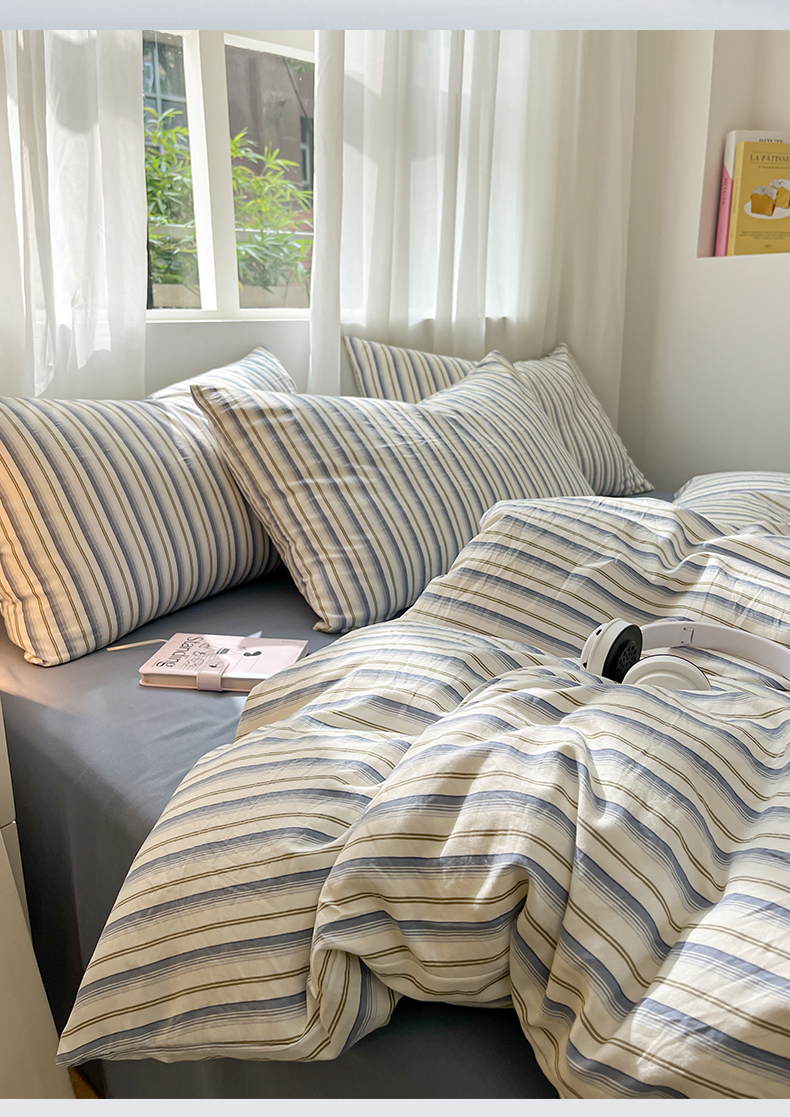 当前位置: 91家纺网 > 商品网购 > 床品套件 > 四件套 > 水洗棉四件套 > 盛秋家纺 2025新款亲肤格子水洗棉条纹格子四件套【简约风】灰苏条+蓝灰