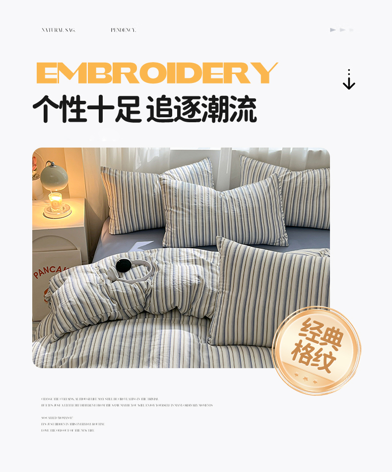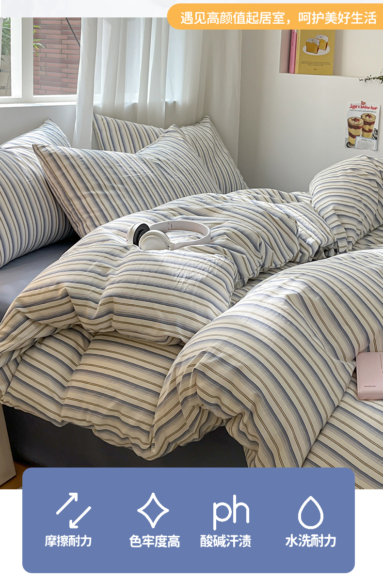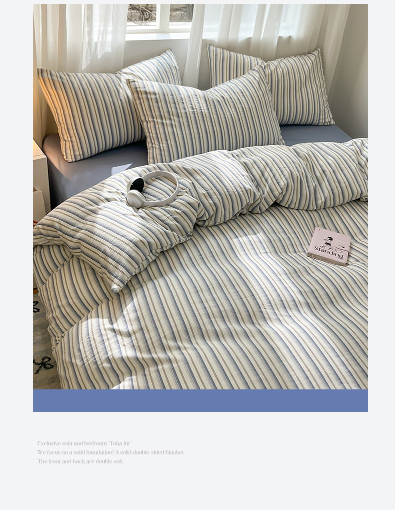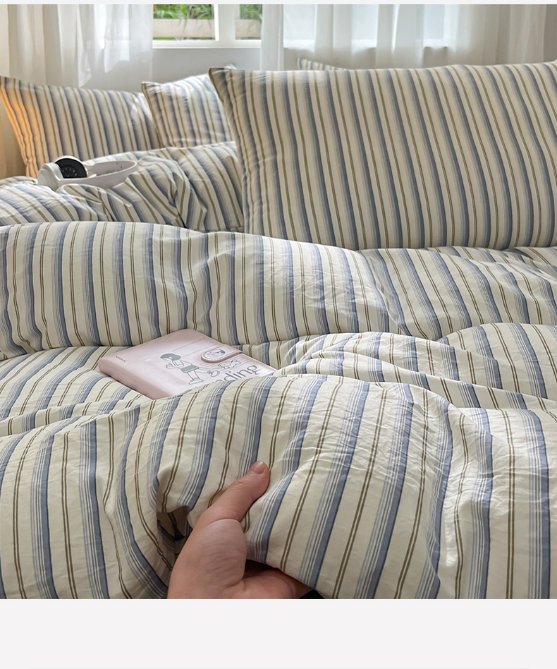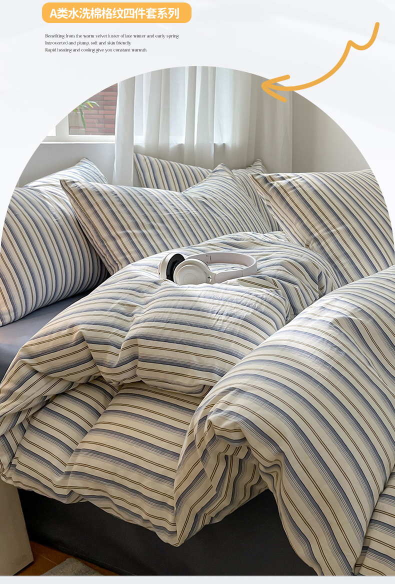当前位置: 91家纺网 > 商品网购 > 床品套件 > 四件套 > 水洗棉四件套 > 盛秋家纺 2025新款亲肤格子水洗棉条纹格子四件套【简约风】灰苏条+蓝灰