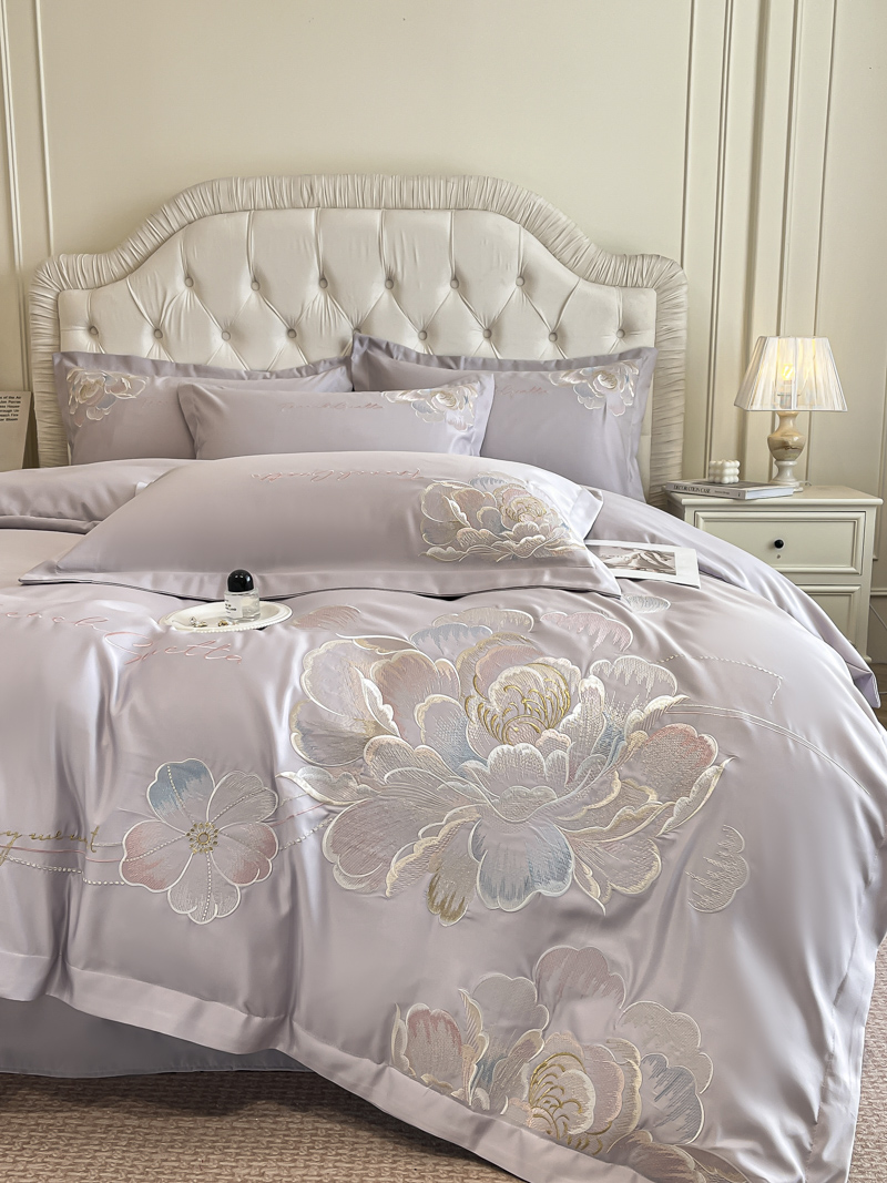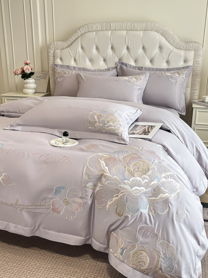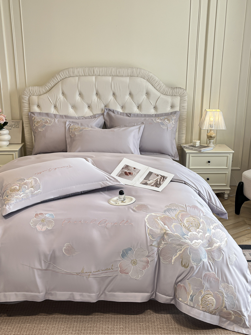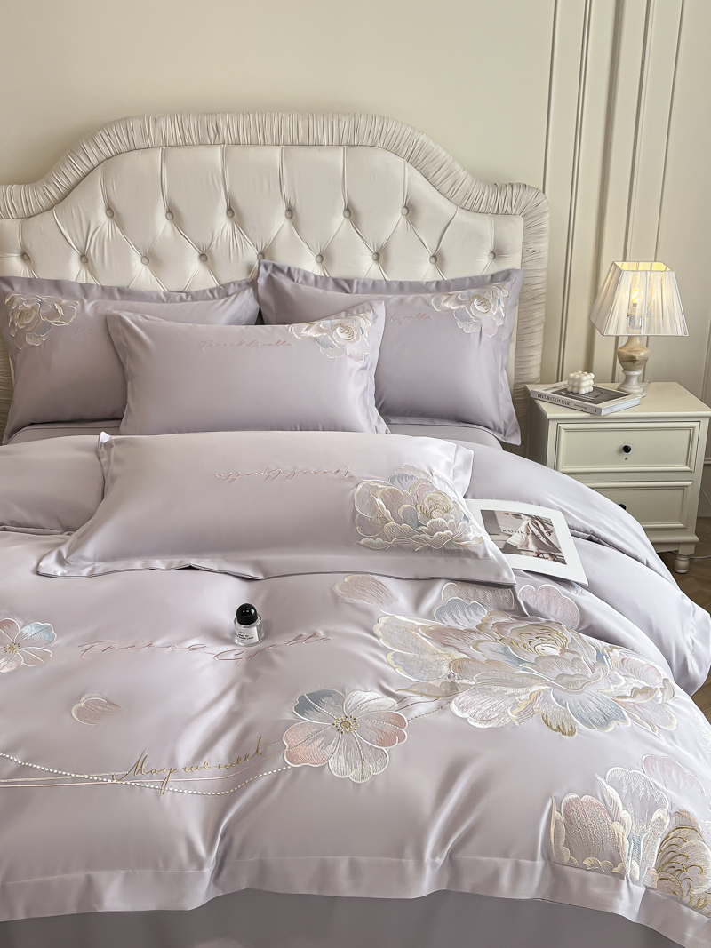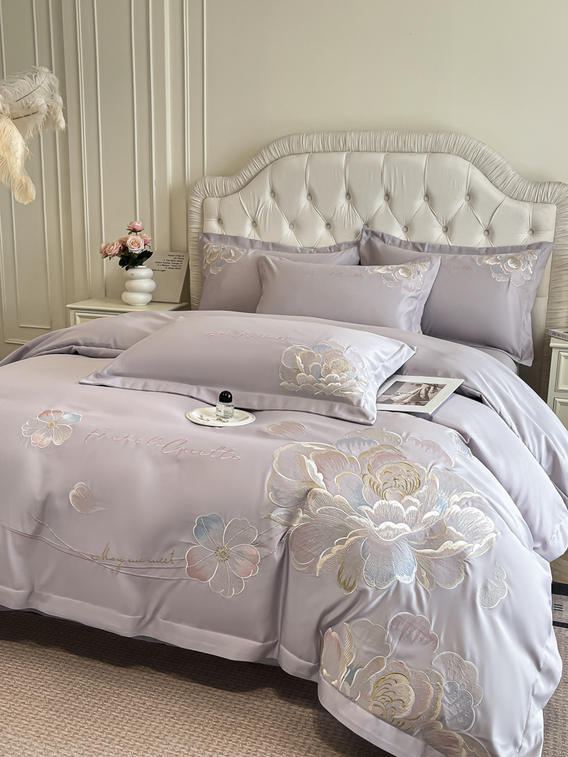 (总)菲儿家纺 2025新款轻奢简约冰丝刺绣四件套-铃兰,铃兰-灰,铃兰-兰,铃兰-粉,铃兰-米白,铃兰-紫