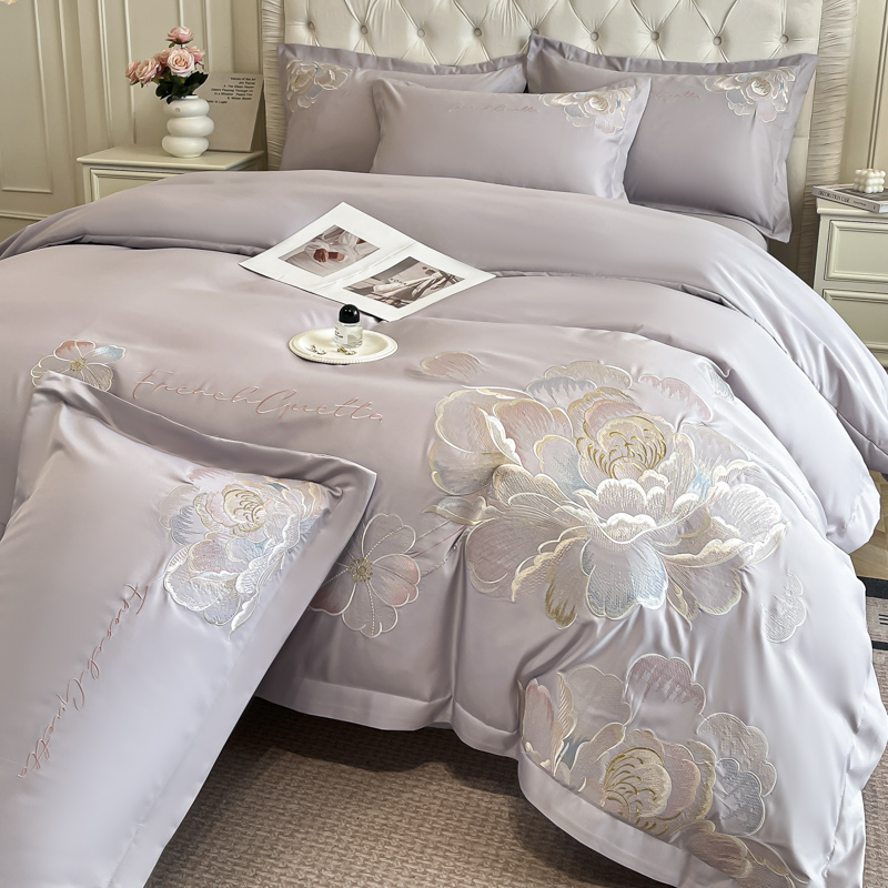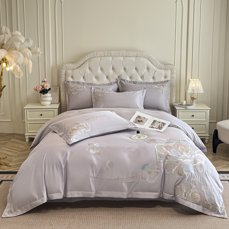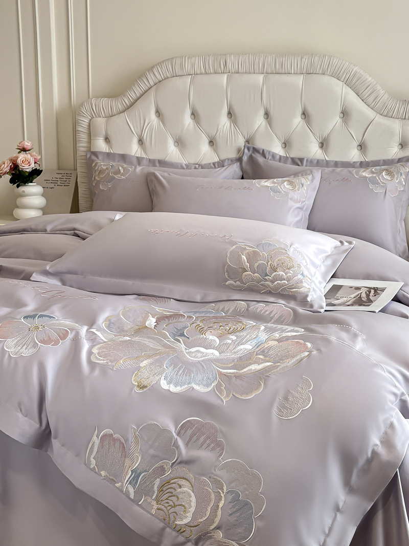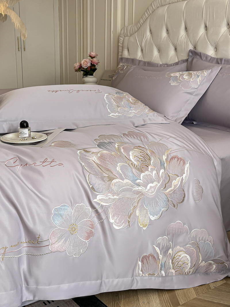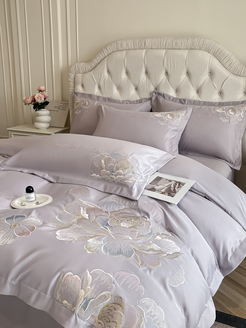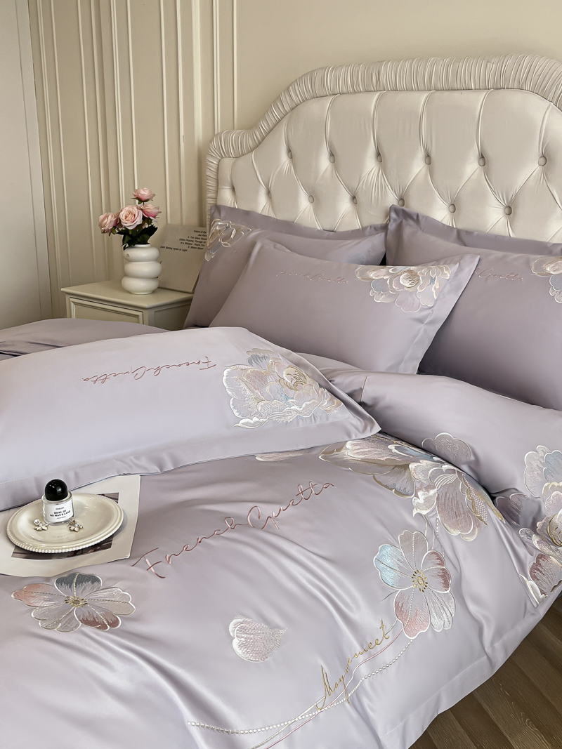 (总)菲儿家纺 2025新款轻奢简约冰丝刺绣四件套-铃兰,铃兰-灰,铃兰-兰,铃兰-粉,铃兰-米白,铃兰-紫