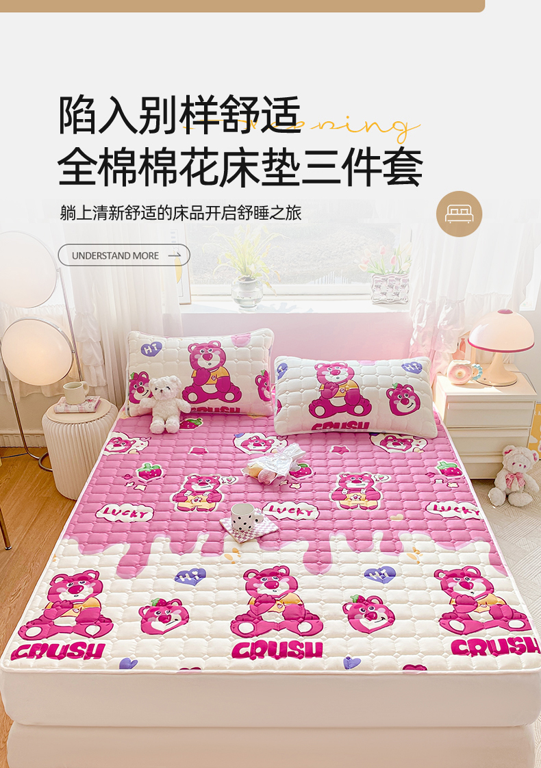 当前位置: 91家纺网 > 商品网购 > 床垫/床褥 > 普通床垫 > 鸣升家纺 2025新款全棉印花床垫 草莓熊宝