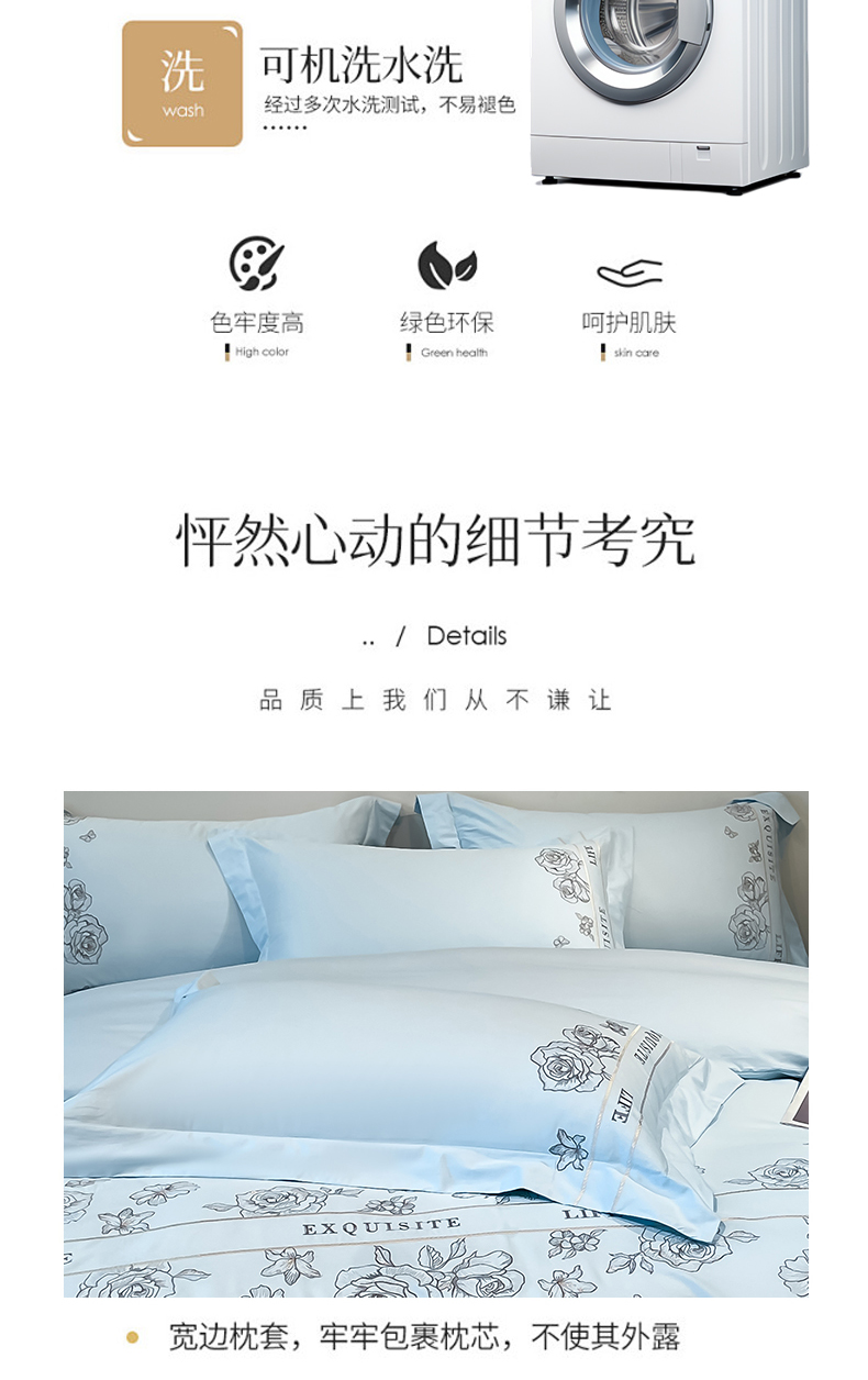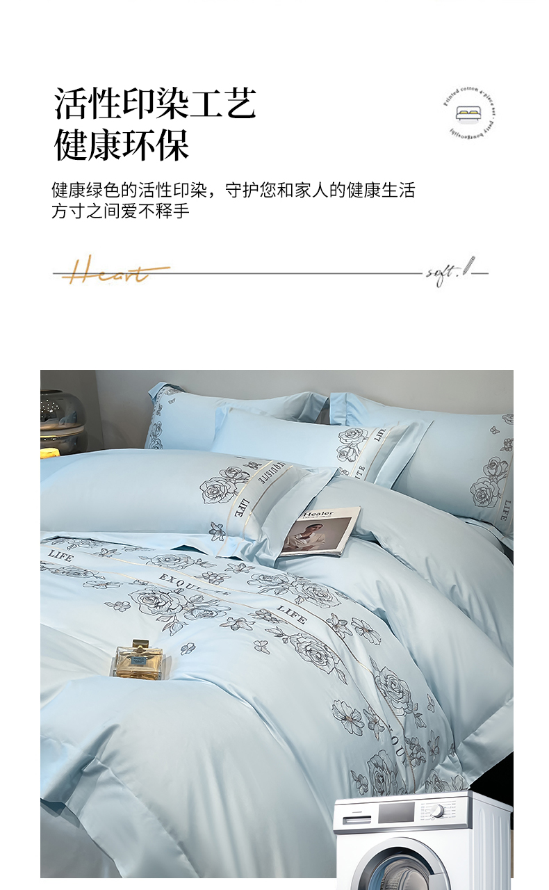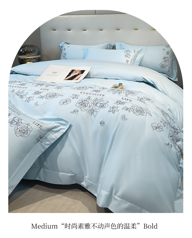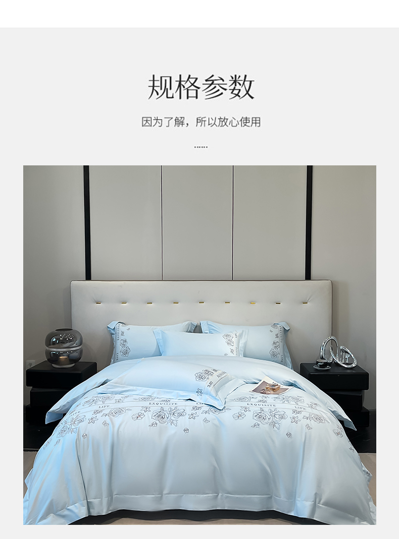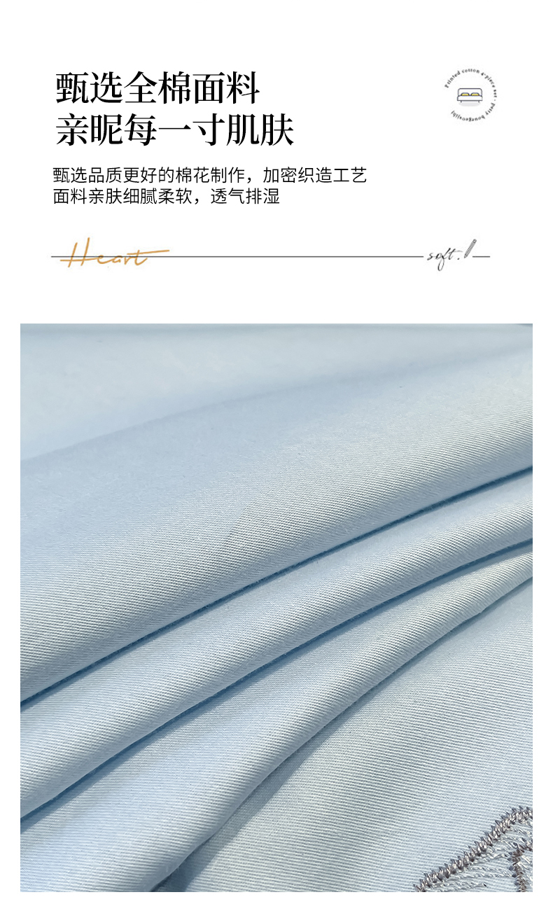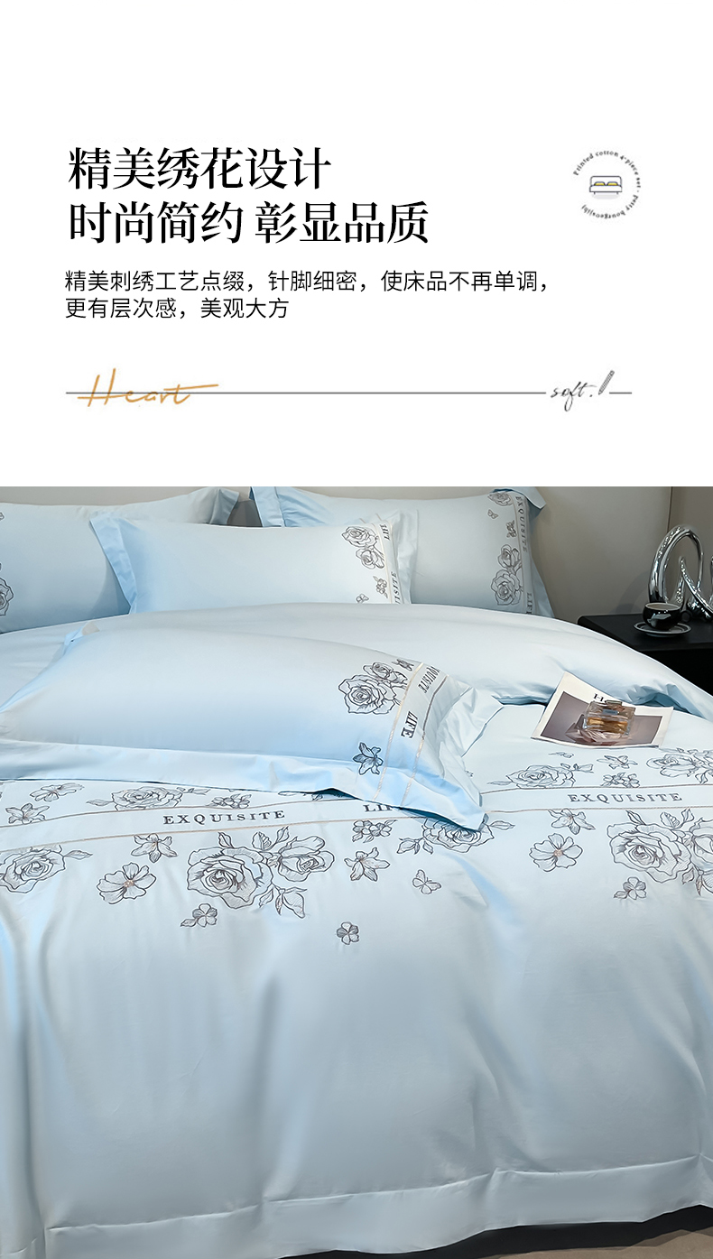 商品名称:金牛座家纺 2025新款长绒棉全棉刺绣四件套-倾心系列 倾心-浅蓝