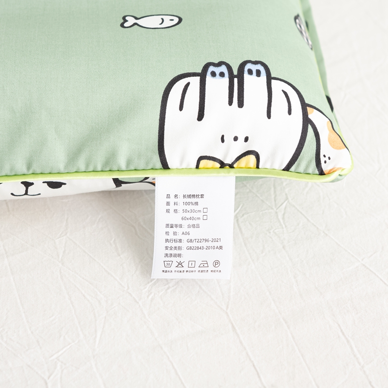 萌番宝 A类新款60支长绒棉纯棉儿童枕套枕头 招财猫