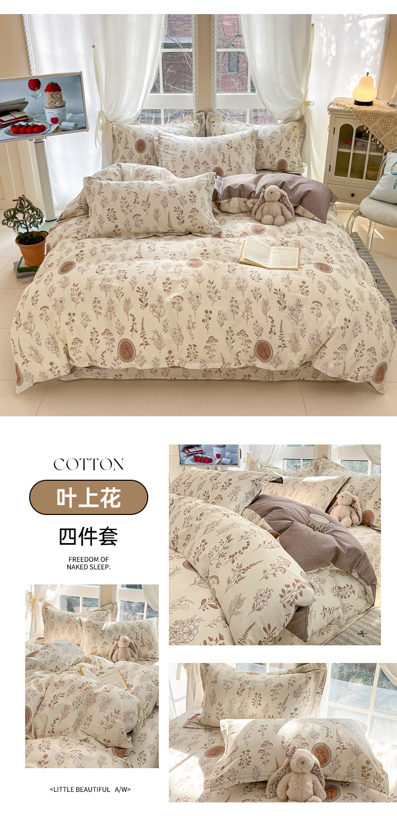 当前位置: 91家纺网 > 商品网购 > 床品套件 > 四件套 > 全棉普通四件套 > 莱通家纺 2025春夏新款12868印花四件套 叶上花