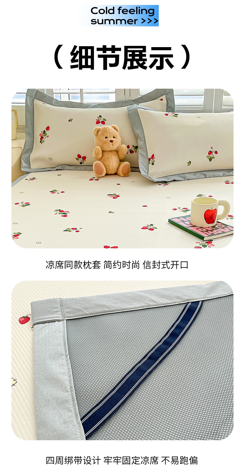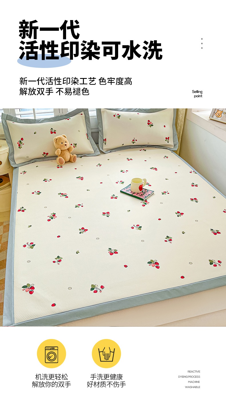 星座家纺 2025新款大斜纹复合冰丝凉席-床席款 奶油草莓