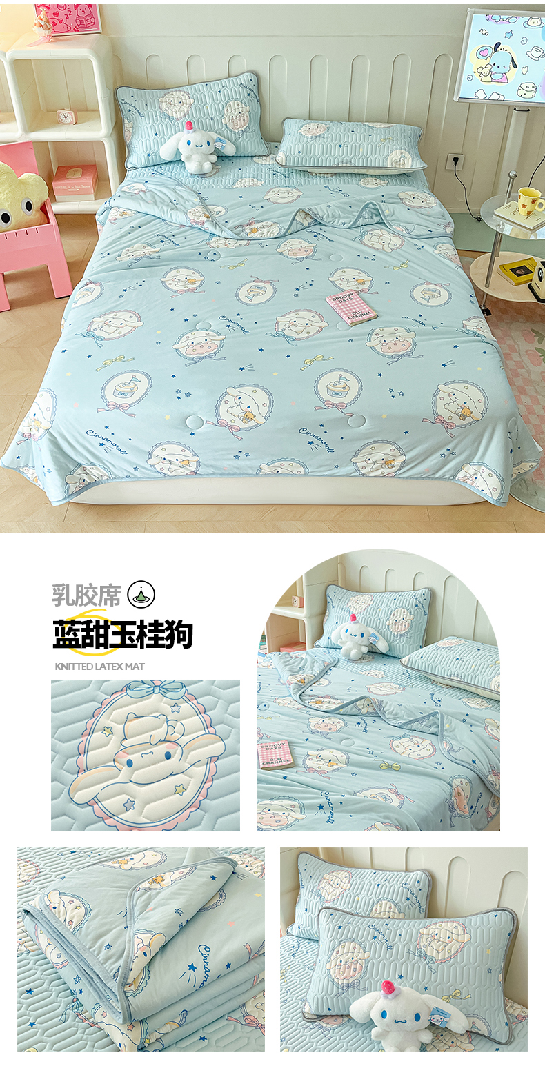 当前位置: 91家纺网 > 商品网购 > 床品套件 > 四件套 > 夏被四件套 > 金爱家2025新款A类三丽鸥高品质可组合凉感丝乳胶席牛奶丝针织棉软糯夏被四件套 乳胶席-蓝甜玉桂狗