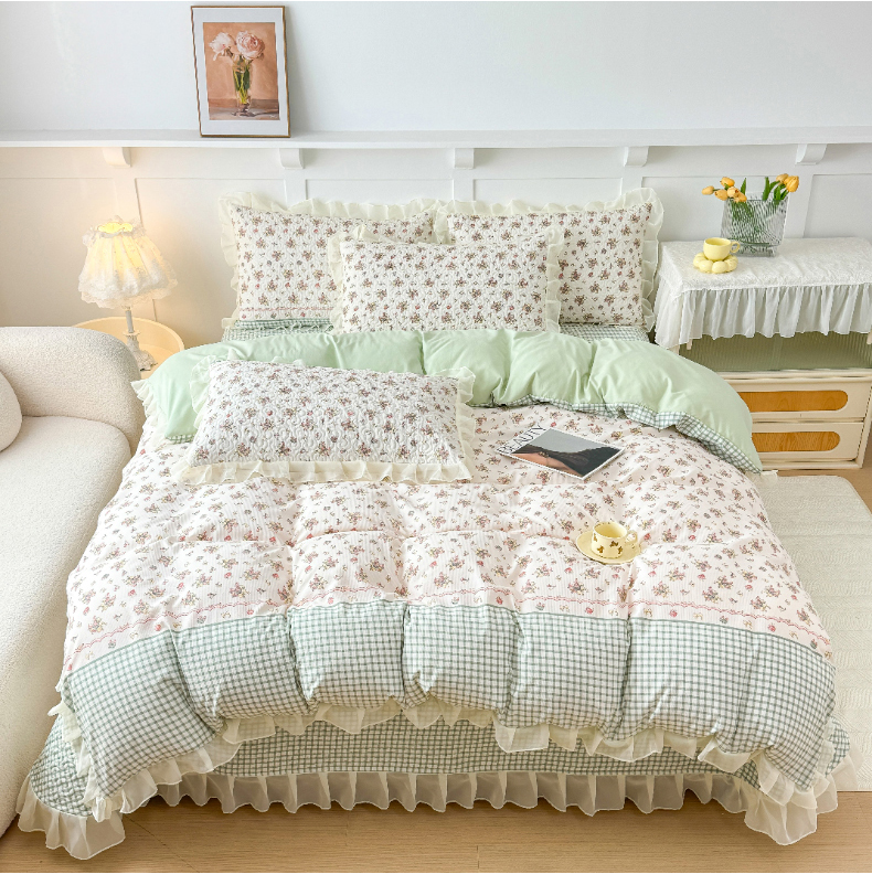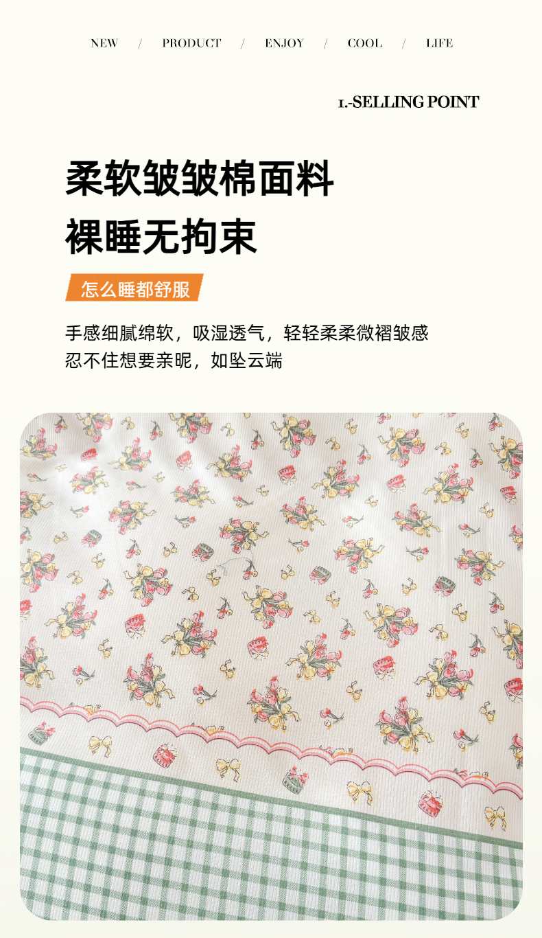商品名称:晨晨家纺 2025新款皱皱纱棉拼色床盖四件套 柏拉图