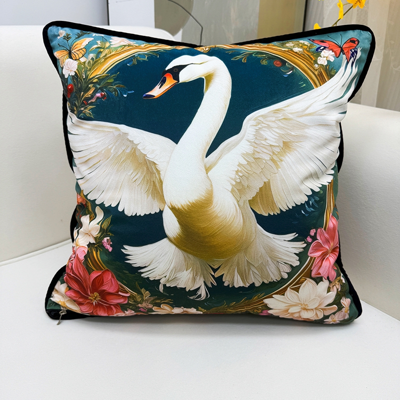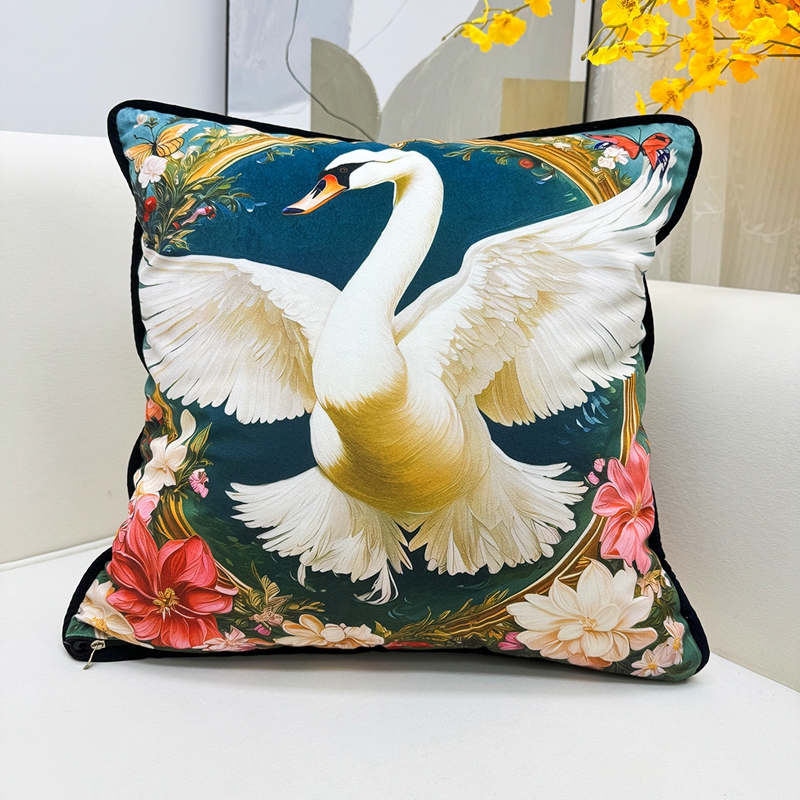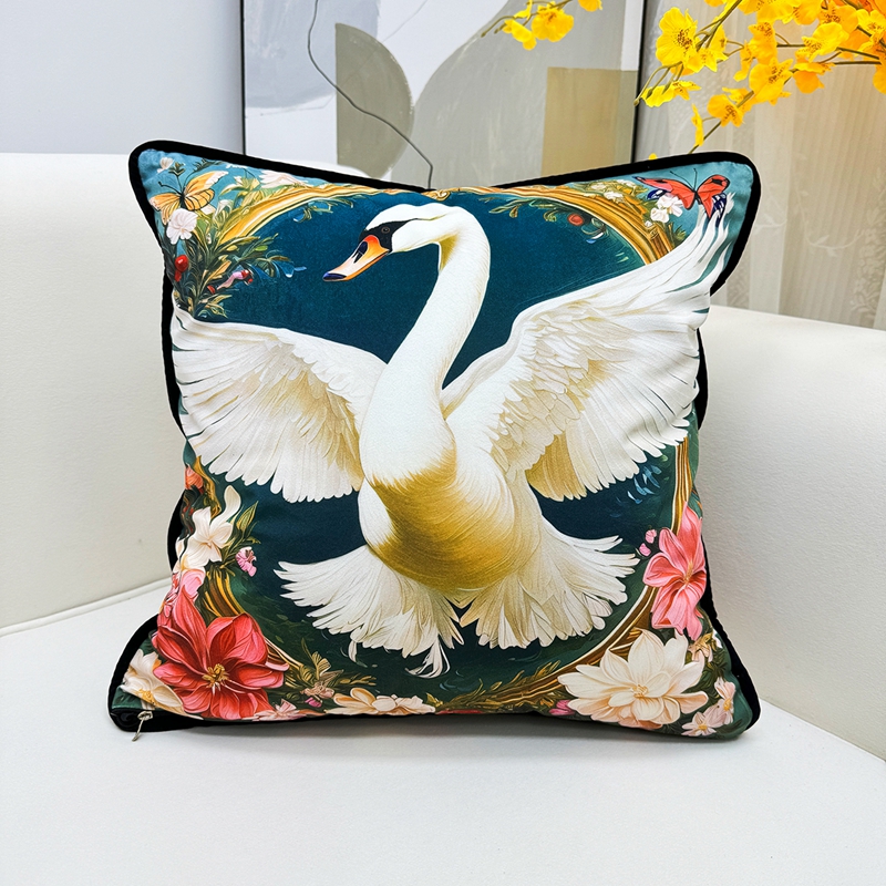 商品名称:爱家居 2025新款抱枕沙发新中式靠垫轻奢高级感靠枕床头大靠背正方形抱枕套卡通花卉 展翅的白天鹅