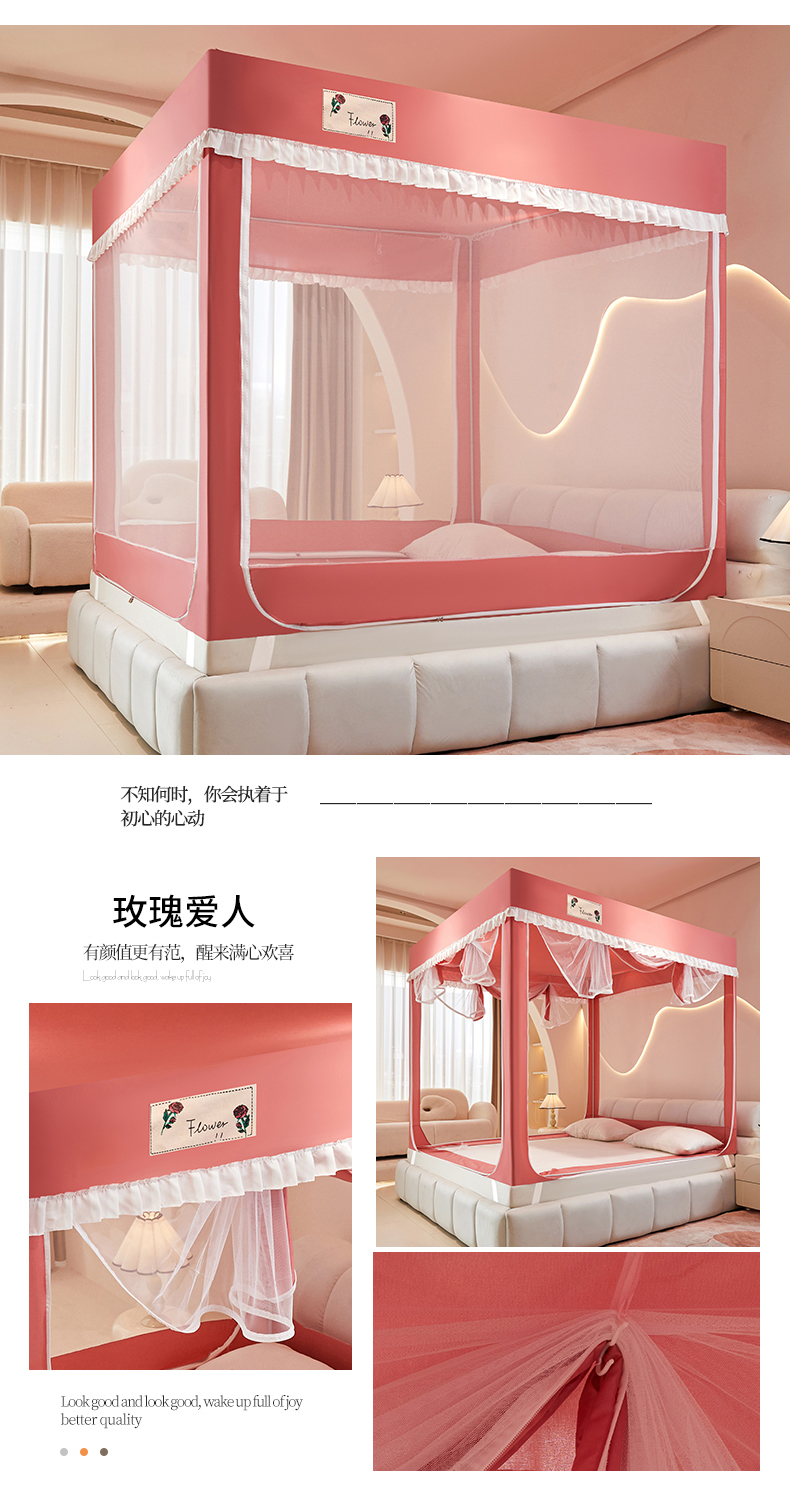 商品名称:锦逸家居 2025新款坐床式防摔遮光蚊帐 玫瑰爱人-遮光