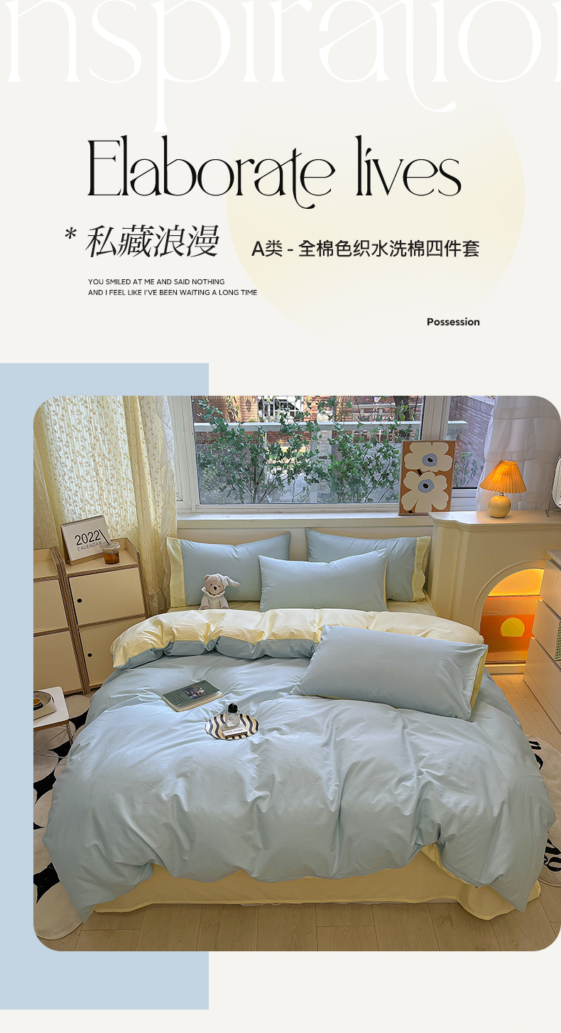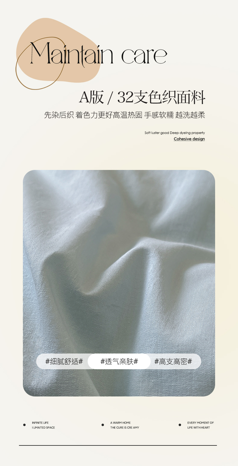 卡巴伦家纺 2025新款A版色织32支B版40支纯棉A类水洗棉四件套单被套 晨雾象牙