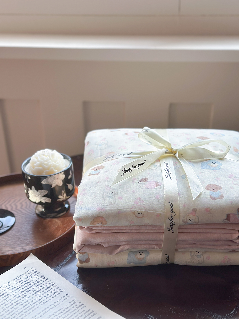 当前位置: 91家纺网 > 商品网购 > 床品套件 > 四件套 > 全棉普通四件套 > 吉象双层纱叠拍四件套 泡芙狗狗