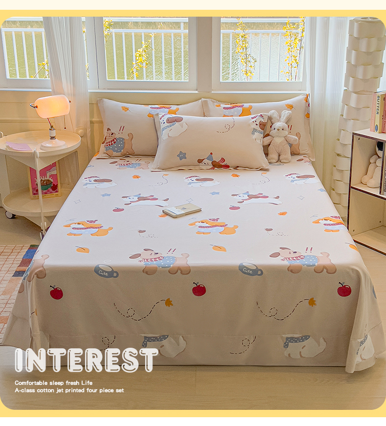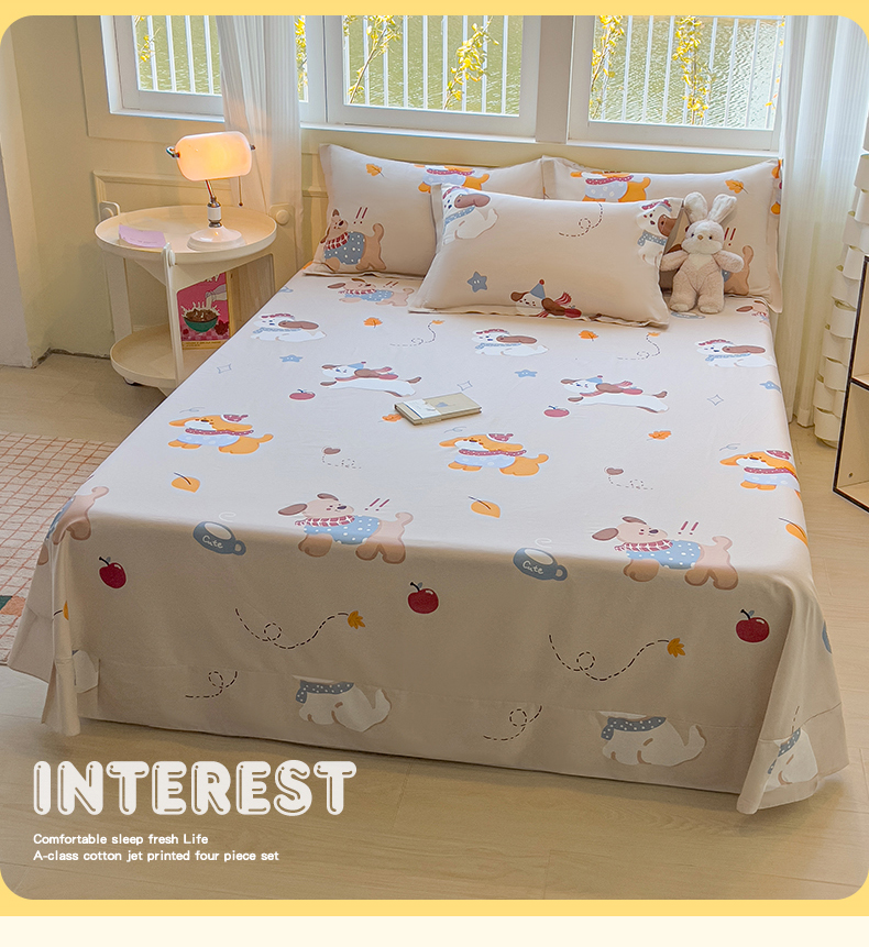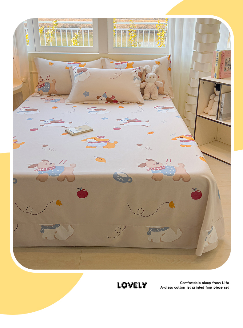 拾物记 2025新款A类无荧光全喷气全棉12868单床单 甜甜萌狗