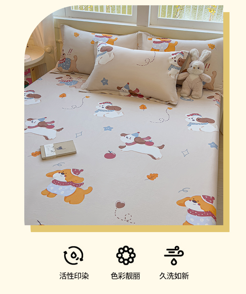 • 91家纺网 家纺一手货源 找家纺 拾物记 2025新款A类无荧光全喷气全棉12868单床单 甜甜萌狗