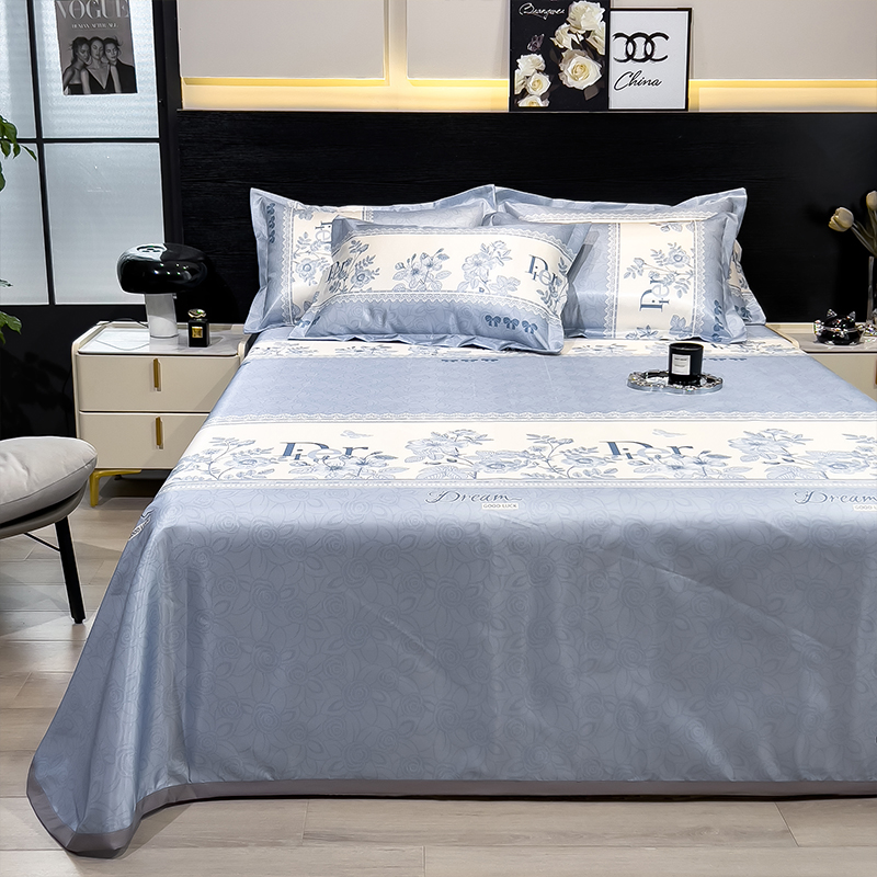 商品名称:柏薇 2025新款冰丝床单款凉席三件套系列 凝光
