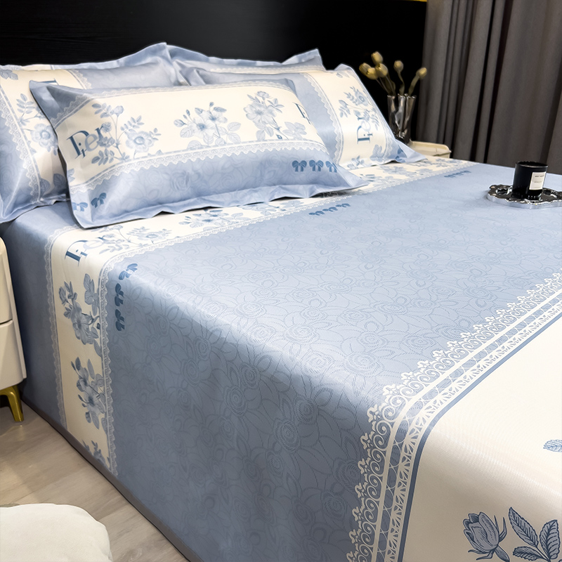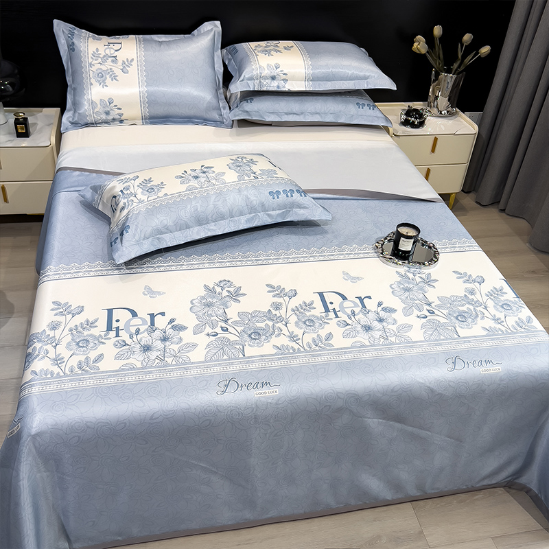 柏薇 2025新款冰丝床单款凉席三件套系列 凝光