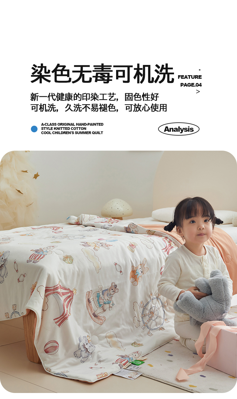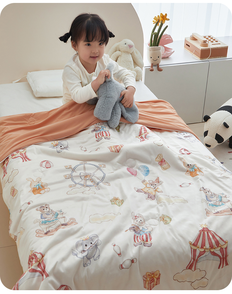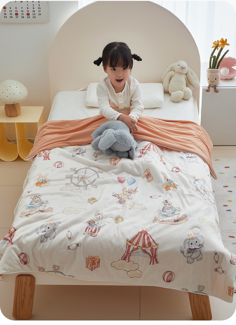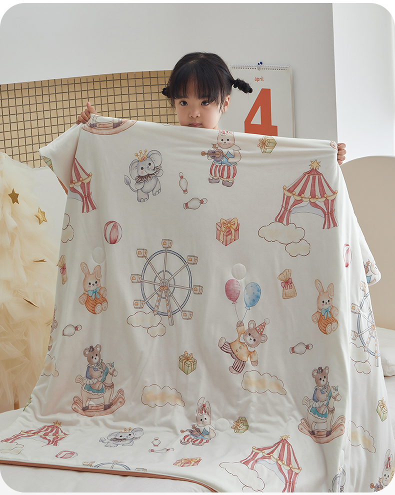 商品名称:荷马之梦 2025新款A类原创手绘风针织棉凉感大豆儿童夏被 马戏团B