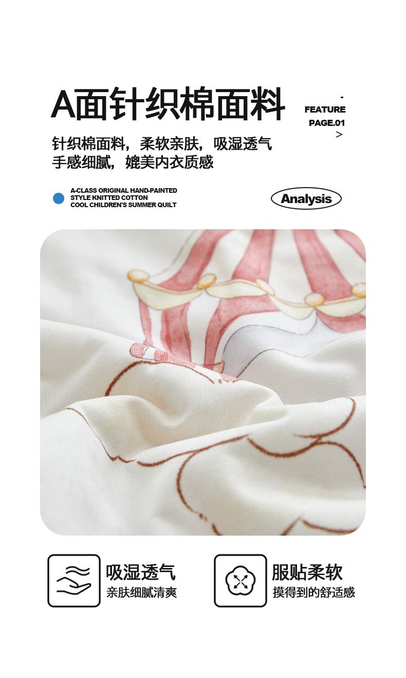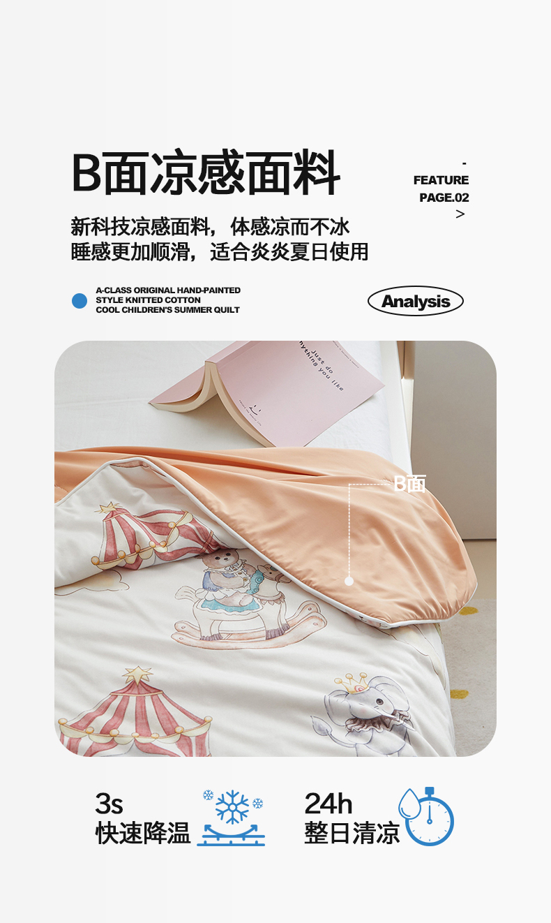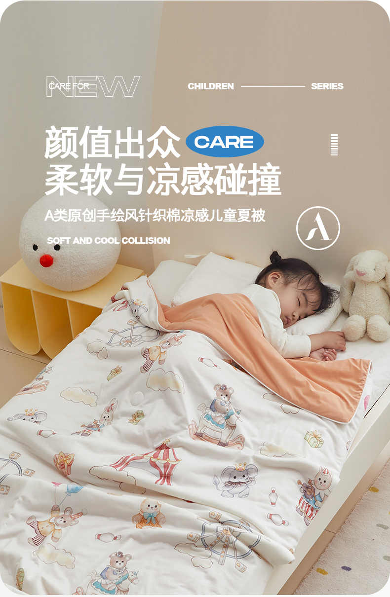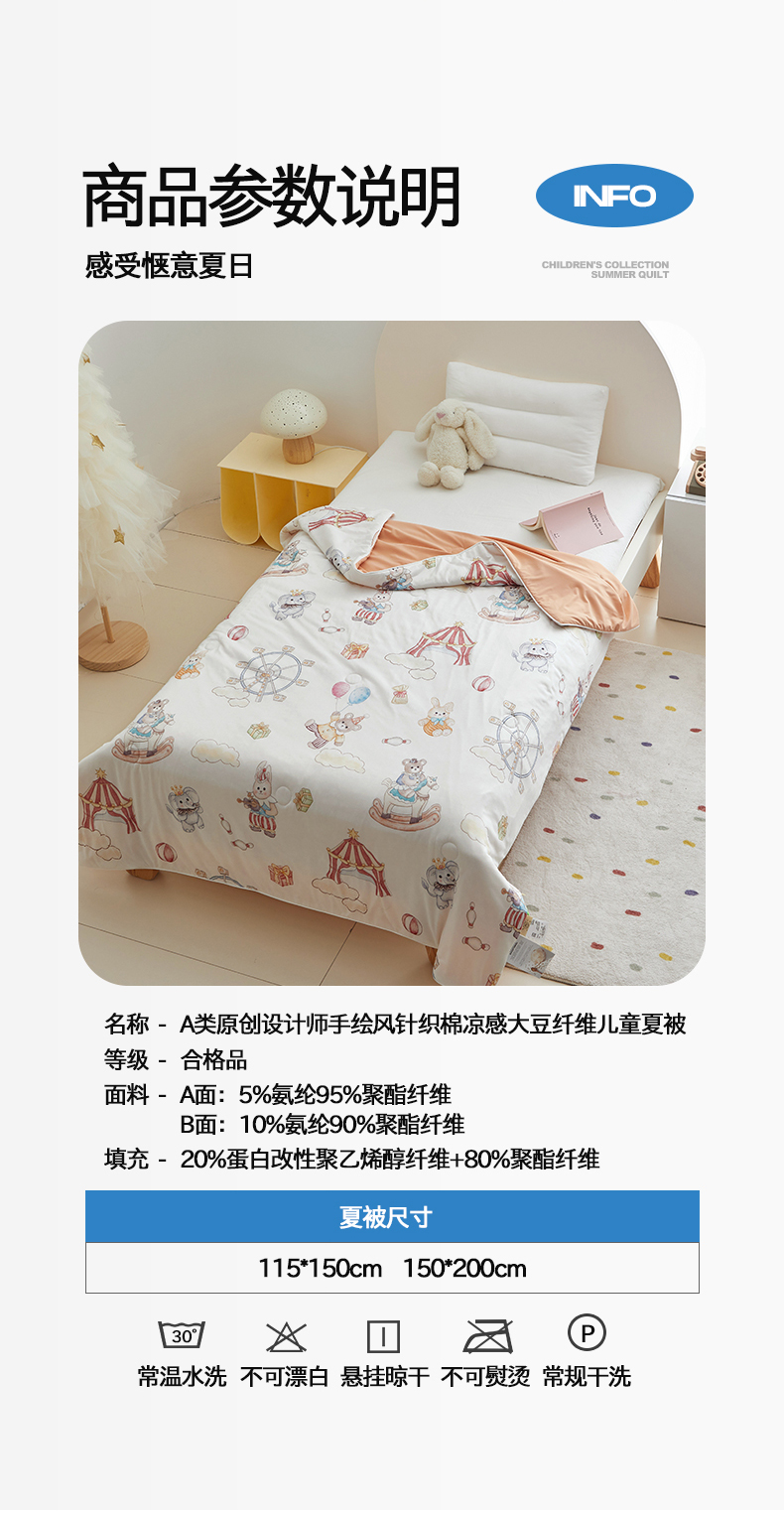 商品名称:荷马之梦 2025新款A类原创手绘风针织棉凉感大豆儿童夏被 马戏团B