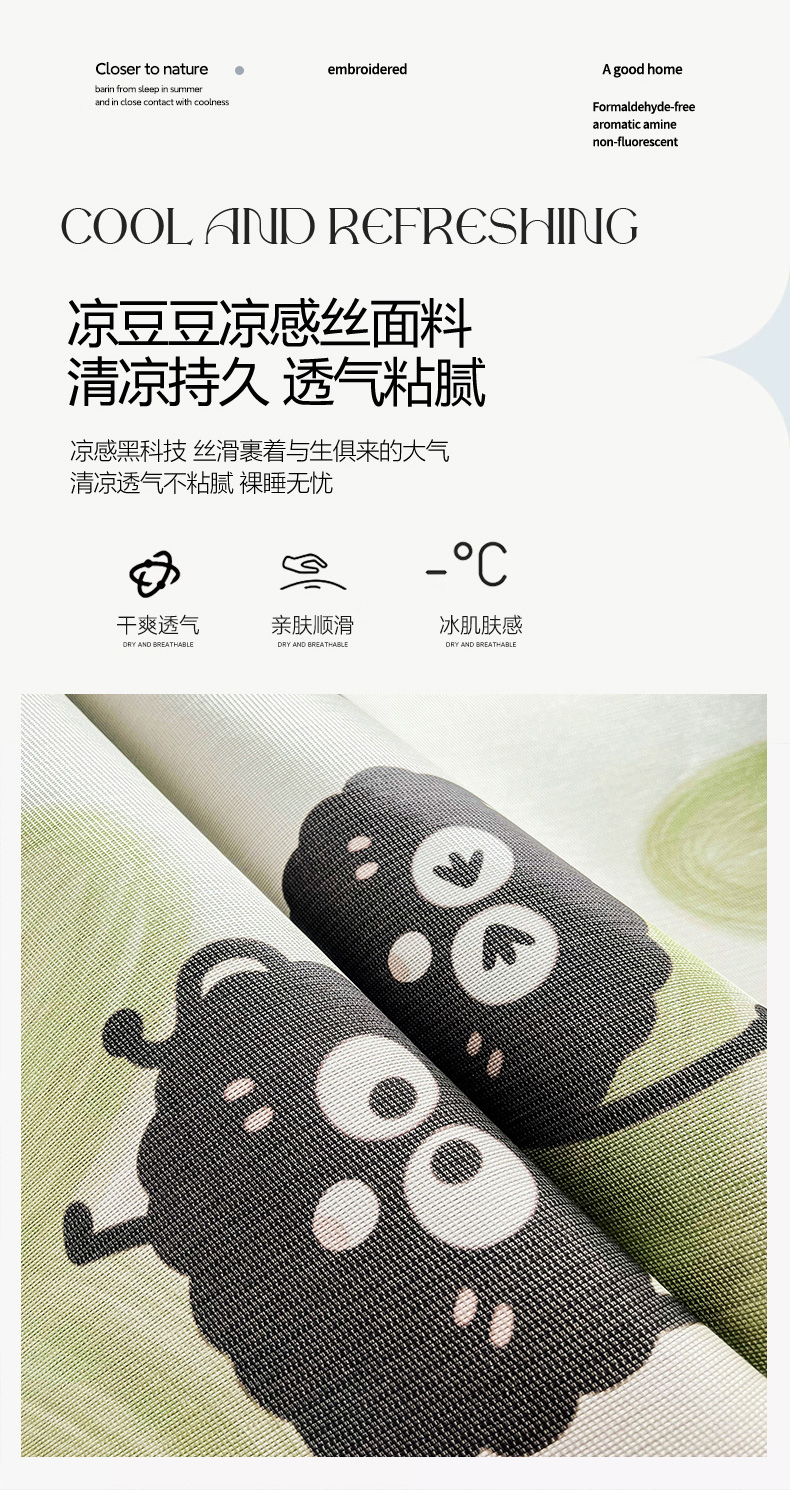 商品名称:倾慕家纺 2025新款时尚风凉感冰丝席 爱心小黑