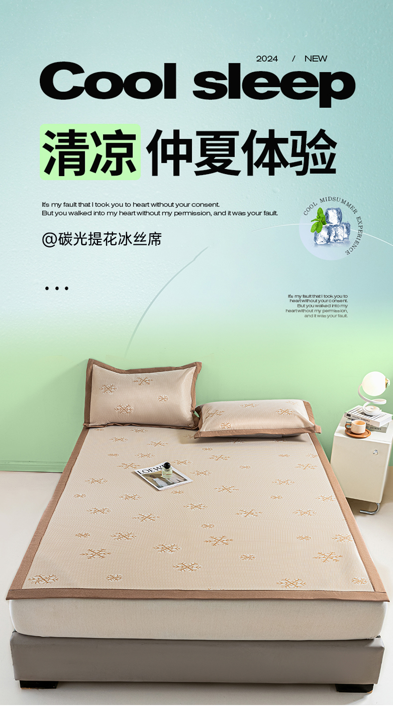 商品名称:阿亮家居 2025新款凉席碳光席冰丝席三件套 雪花-咖色