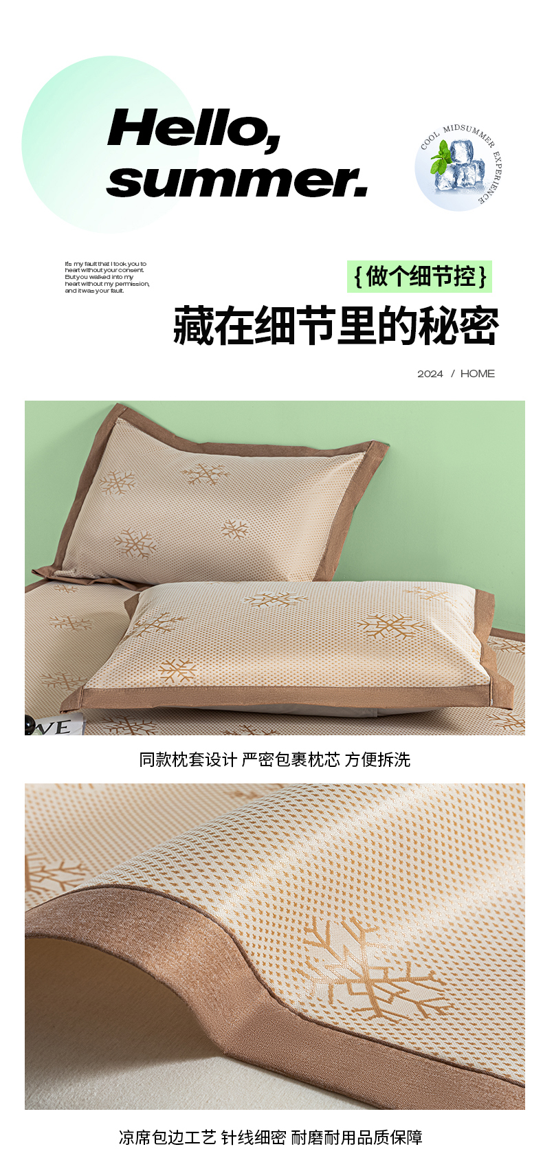 阿亮家居 2025新款凉席碳光席冰丝席三件套 雪花-咖色