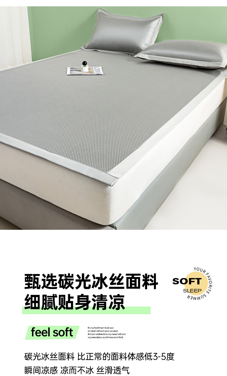 (总)阿亮家居 2025新款A类母婴级1800D碳光小鹿冰丝席凉席,宾利蓝,冰川灰,繁星绿,山茶粉,香槟金