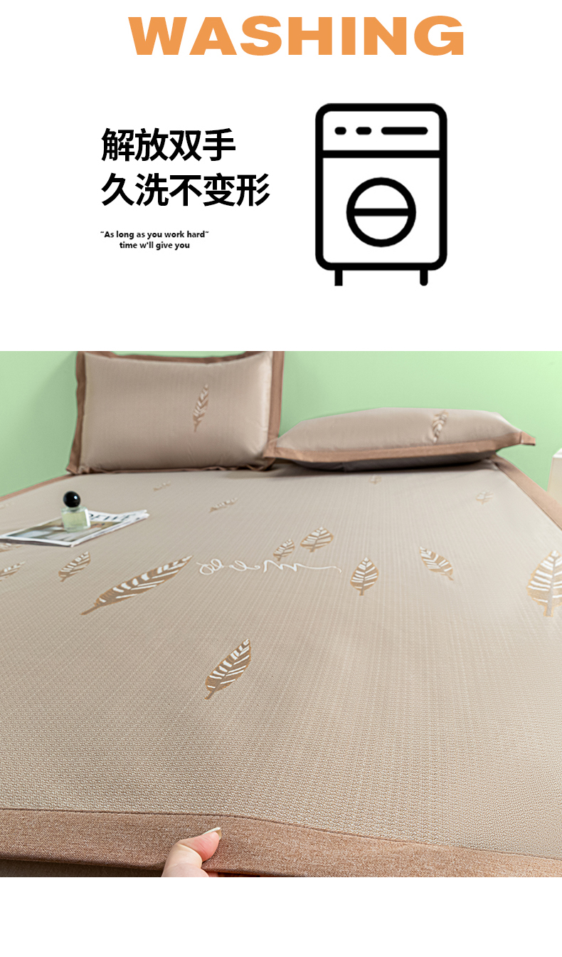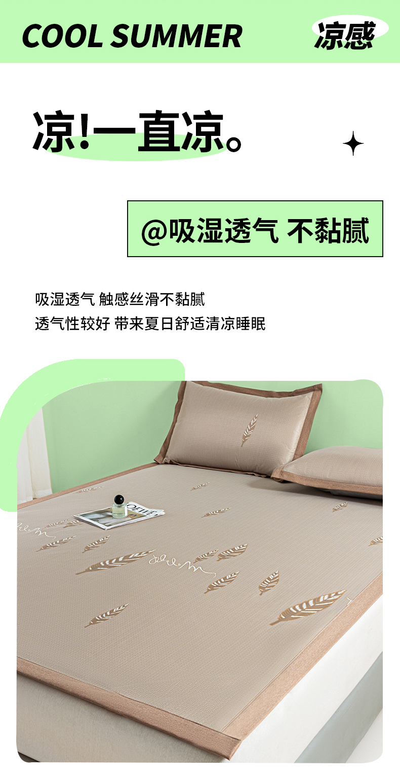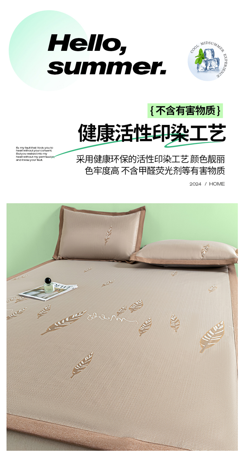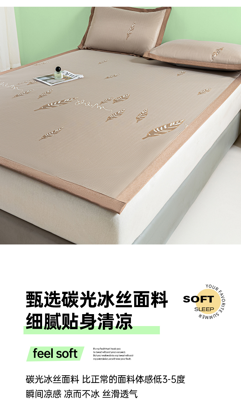 商品名称:阿亮家居 2025新款凉席碳光席冰丝席三件套 叶语芊芊-咖
