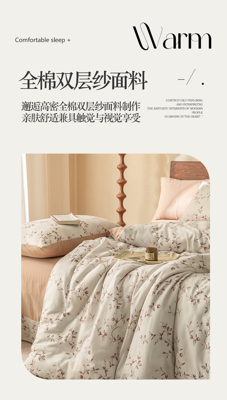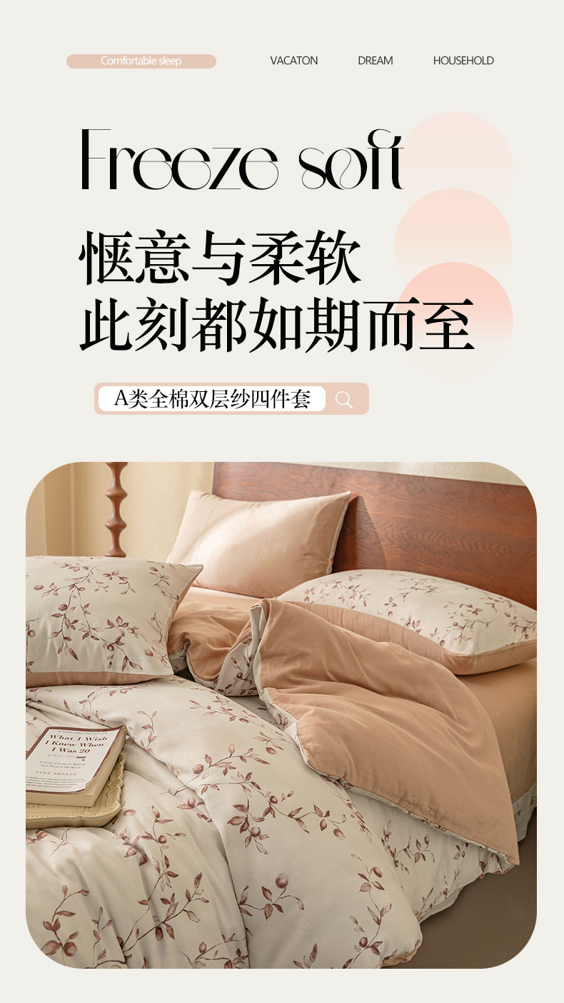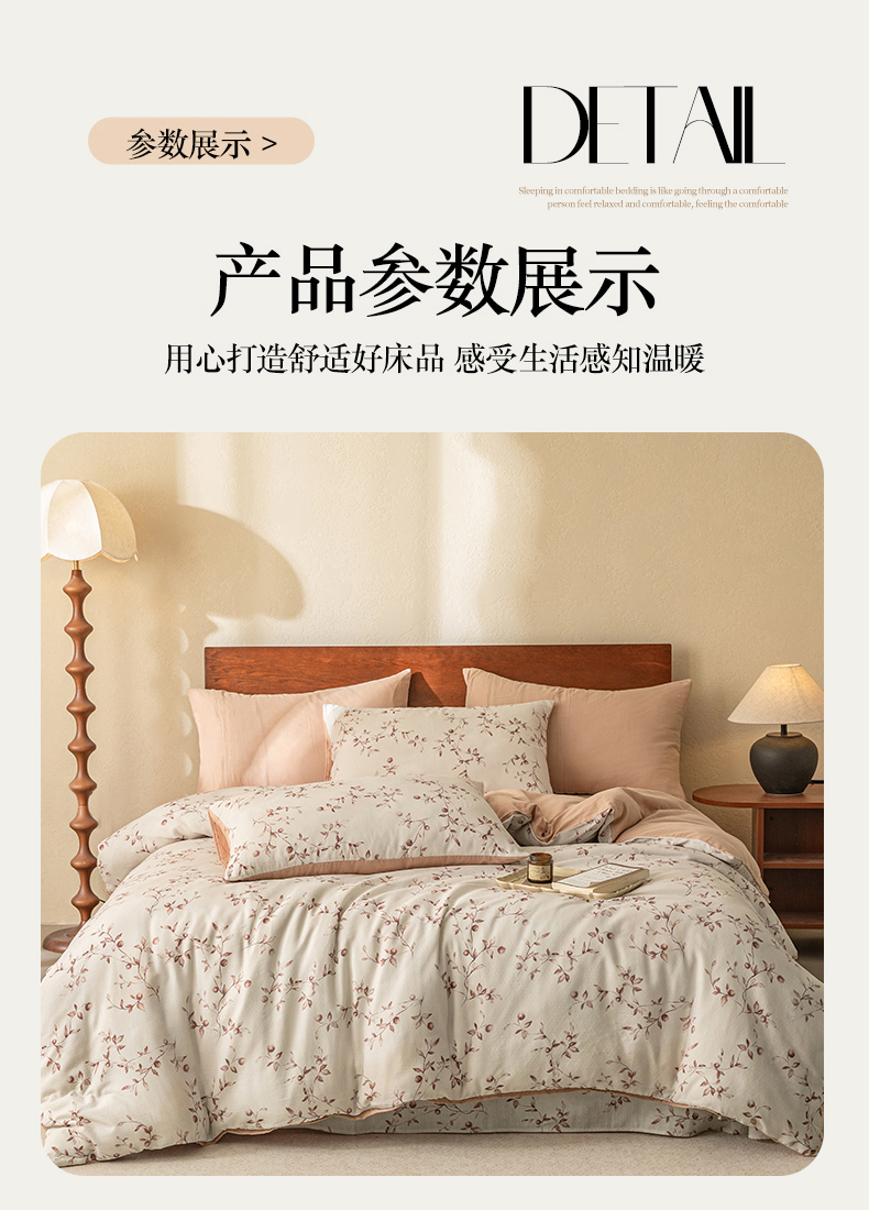 当前位置: 91家纺网 > 商品网购 > 床品套件 > 四件套 > 其它四件套 > 2025新款40s全棉双层纱圆角吊边款四件套 叶初-咖