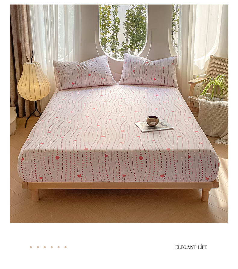雅居纺家纺 2025春夏新款全棉纯棉简约老粗布-单床单 床单单件凉席席 爱心-浅粉